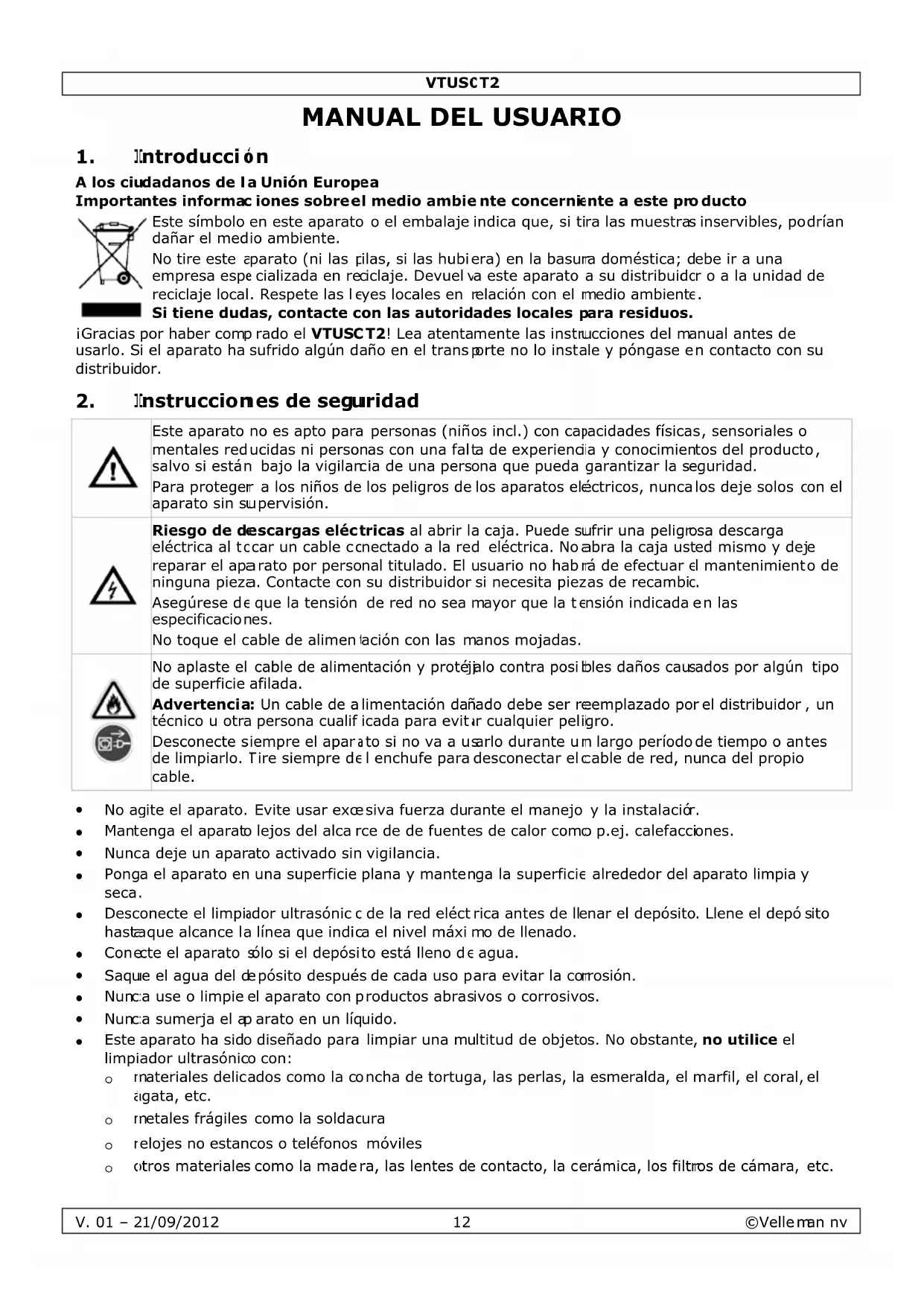 VTUSCT2 - Limpiador ultrasónico VELLEMAN - Manual de uso y guía de instrucciones gratis