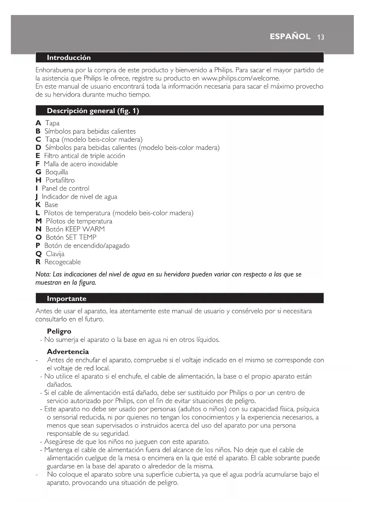 Viva Collection HD9353 - Pava PHILIPS - Manual de uso y guía de instrucciones gratis