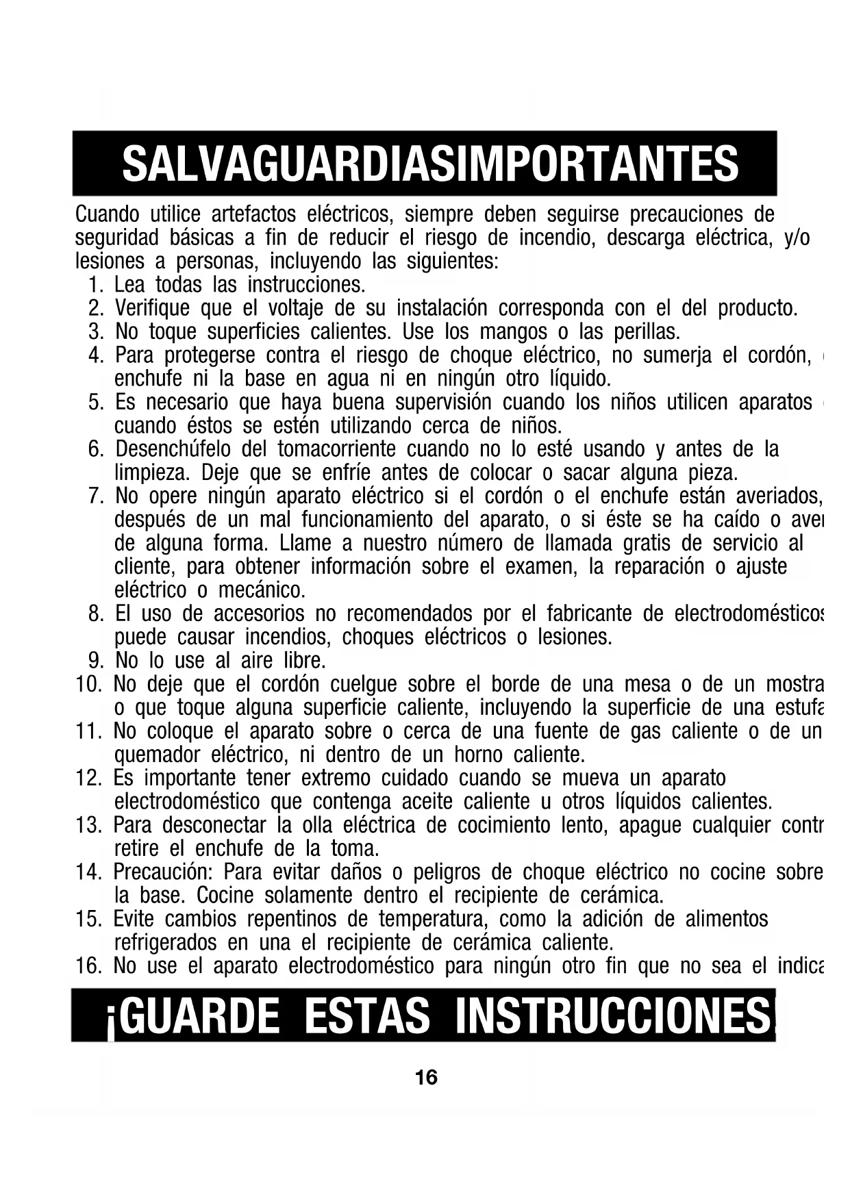16. No use el aparato electrodoméstico para ningún otro fin que no sea el indicado.17