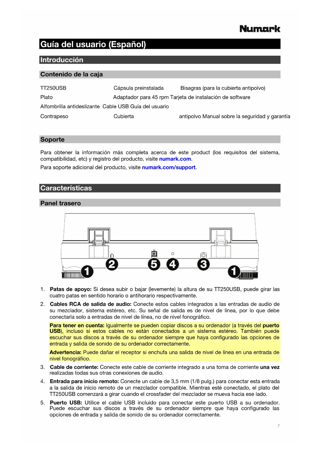 TT250USB - Tocadiscos NUMARK - Manual de uso y guía de instrucciones gratis