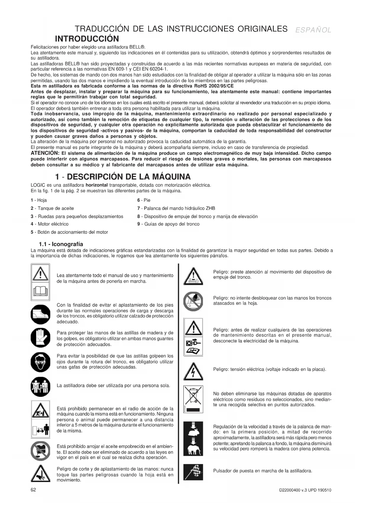 Descarga las instrucciones para tu Divisora de leña en formato PDF gratis! Encuentra tus instrucciones Logic - Bell y toma tu dispositivo electrónico nuevamente en la mano. En esta página están publicados todos los documentos necesarios para el uso de su dispositivo. Logic de la marca Bell.