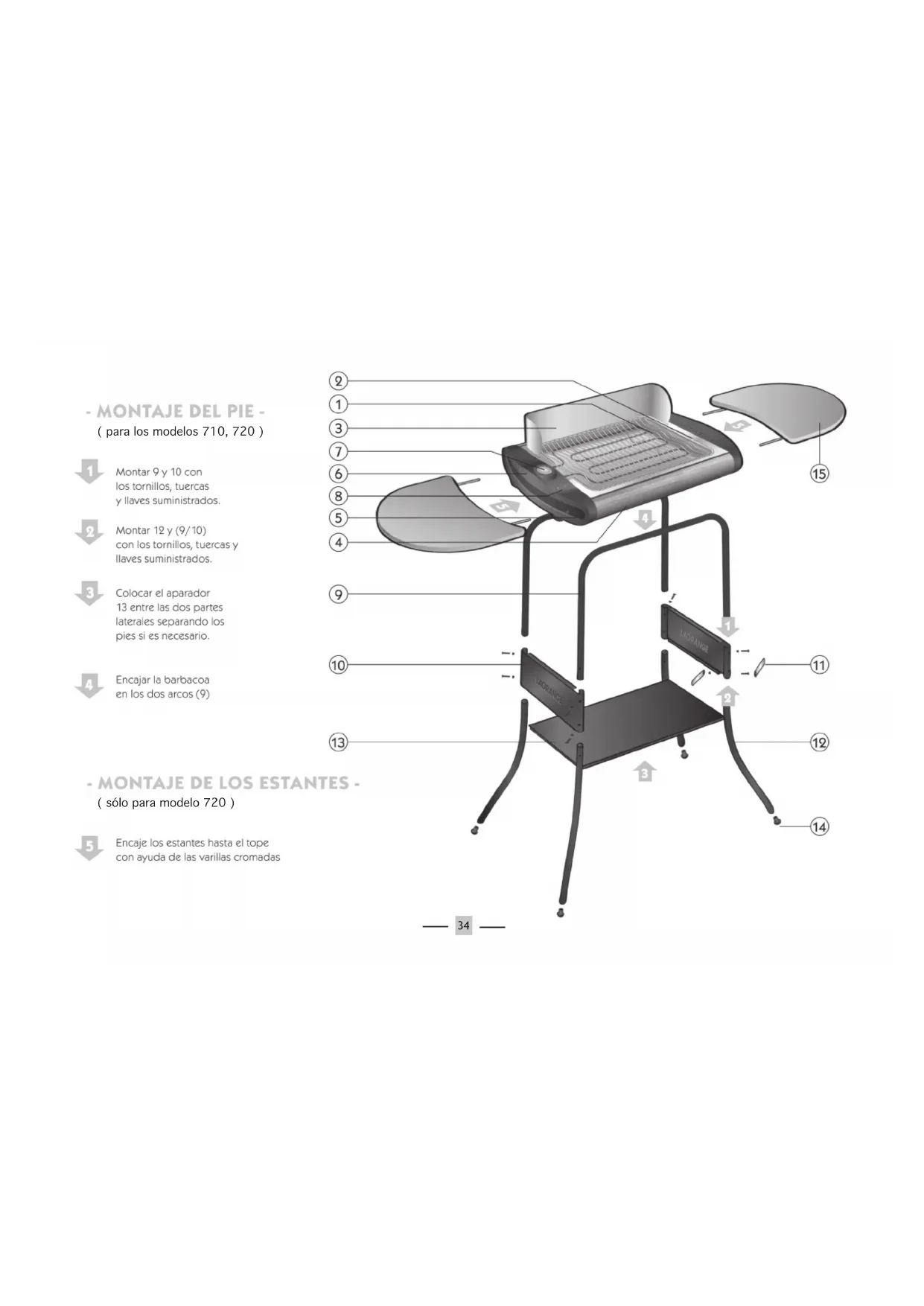 - Los tiempos de asado dependen de los alimentos y de los gustos personales. 37Montaje del pie (según modelo)