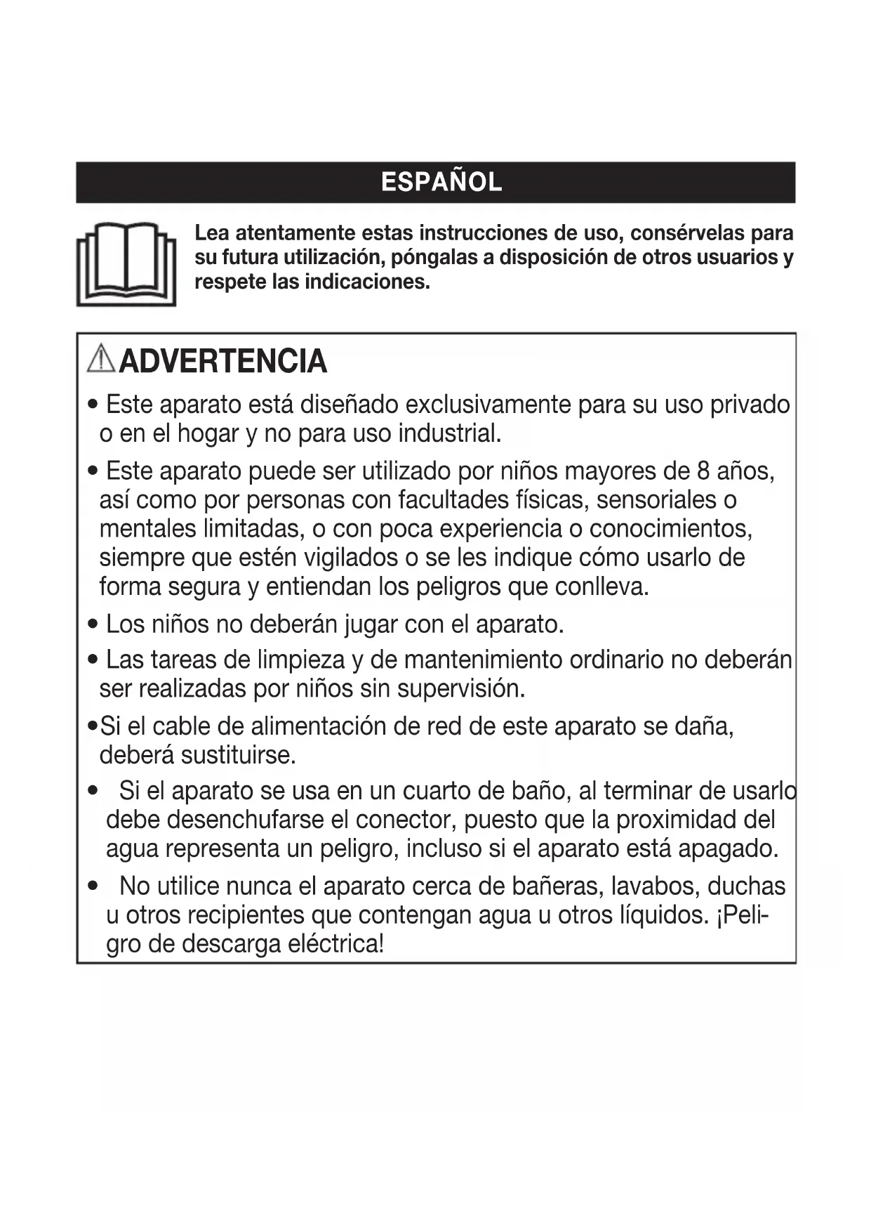 No utilice ningún cable de extensión en el cuarto de baño, para poder alcanzar rápido el co- nector en caso de urgencia. Advertencia Para evitar perjuicios para la salud, tenga en cuenta los siguientes puntos:
