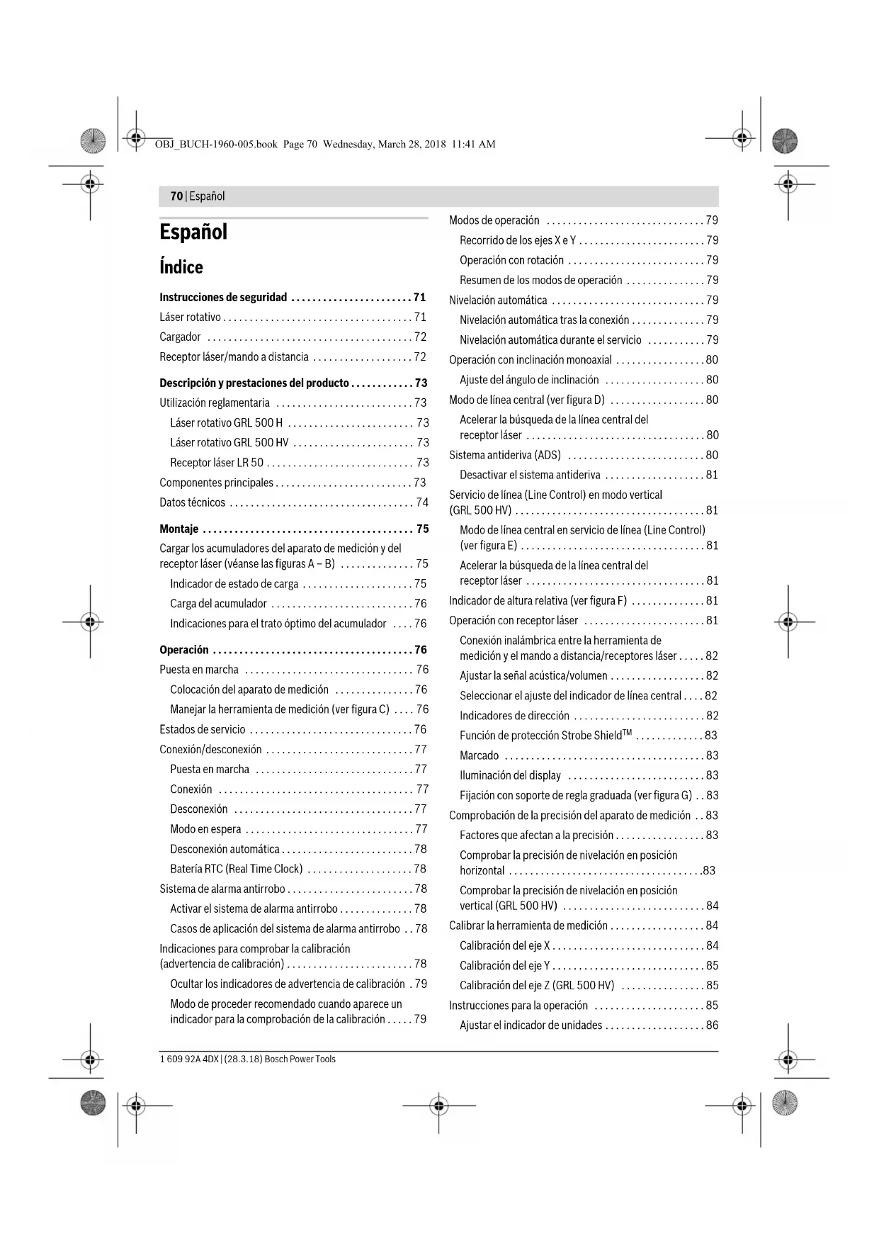 - OBJ_BUCH-1960-005.book Page 70 Wednesday, March 28, 2018 11:41 AMEspañol | 71 Bosch Power Tools 1 609 92A 4DX | (28.3.18) Gafas para láser (accesorio especial) p. 86