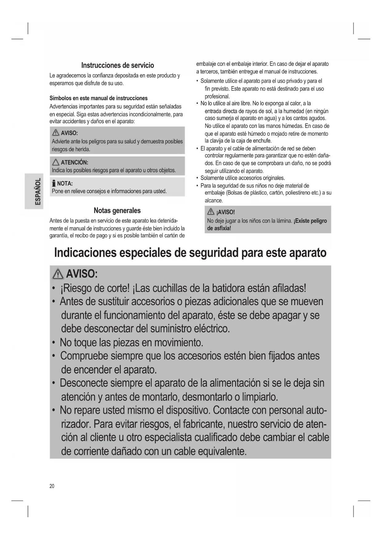 - Para la seguridad de sus niños no deje material de embalaje (Bolsas de plástico, cartón, poliestireno etc.) a su alcance. ¡AVISO! No deje jugar a los niños con la lámina. ¡Existe peligro de asxia! Instrucciones de servicio Le agradecemos la conanza depositada en este producto y esperamos que disfrute de su uso. Símbolos en este manual de instrucciones Advertencias importantes para su seguridad están señaladas en especial. Siga estas advertencias incondicionalmente, para evitar accidentes y daños en el aparato: AVISO: Advierte ante los peligros para su salud y demuestra posibles riesgos de herida. ATENCIÓN: Indica los posibles riesgos para el aparato u otros objetos. NOTA: Pone en relieve consejos e informaciones para usted. Notas generales Antes de la puesta en servicio de este aparato lea detenida- mente el manual de instrucciones y guarde éste bien incluido la garantía, el recibo de pago y si es posible también el cartón de Indicaciones especiales de seguridad para este aparato AVISO:
