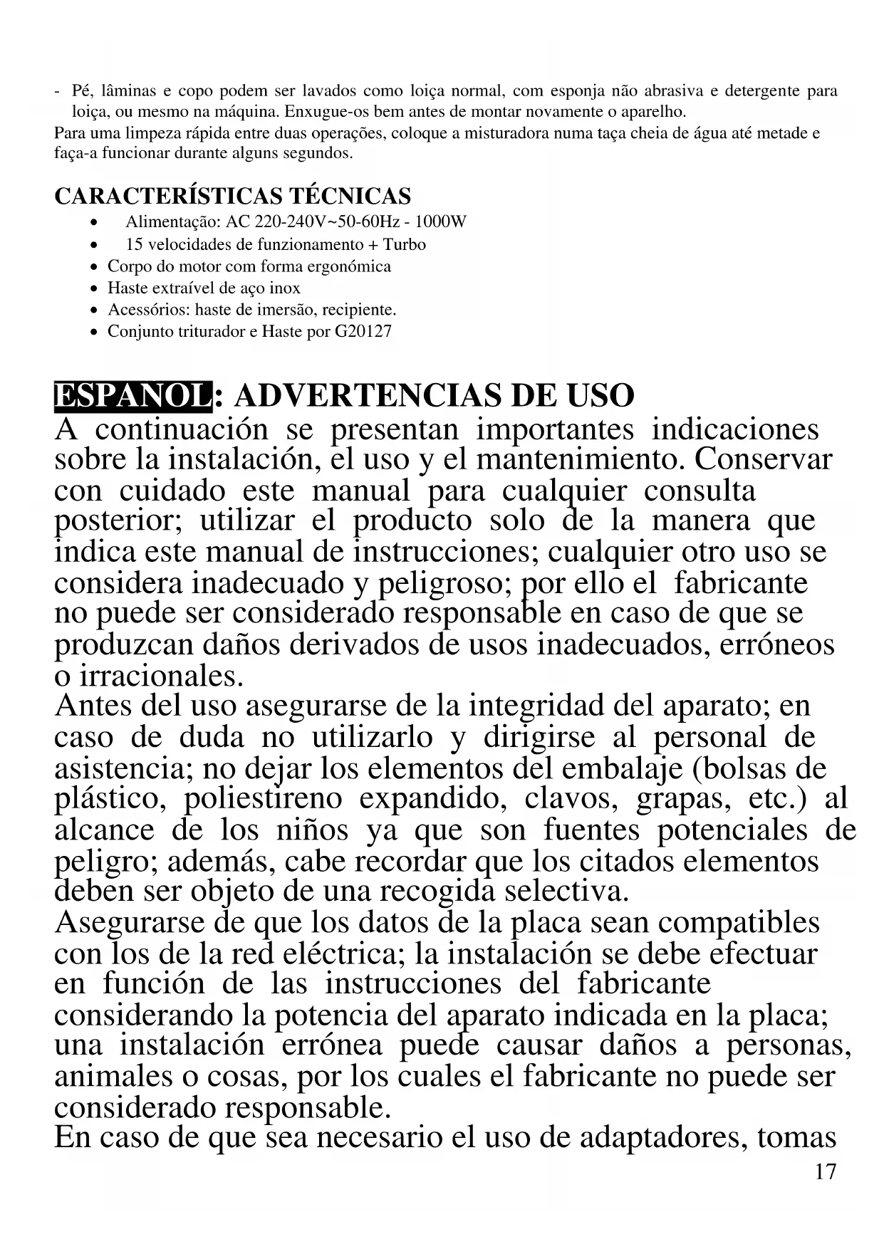 ESPAÑOL: ADVERTENCIAS DE USO