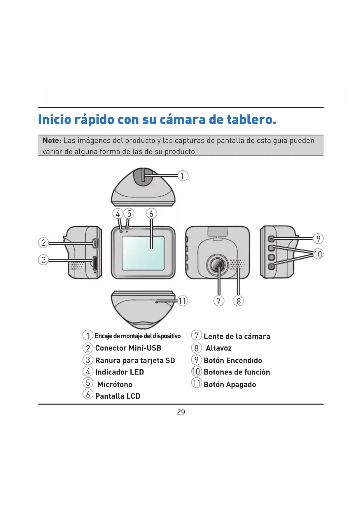 - Garantía Inicio rápido con su cámara de tablero. Note: Las imágenes del producto y las capturas de pantalla de esta guía pueden variar de alguna forma de las de su producto. p. 4829
