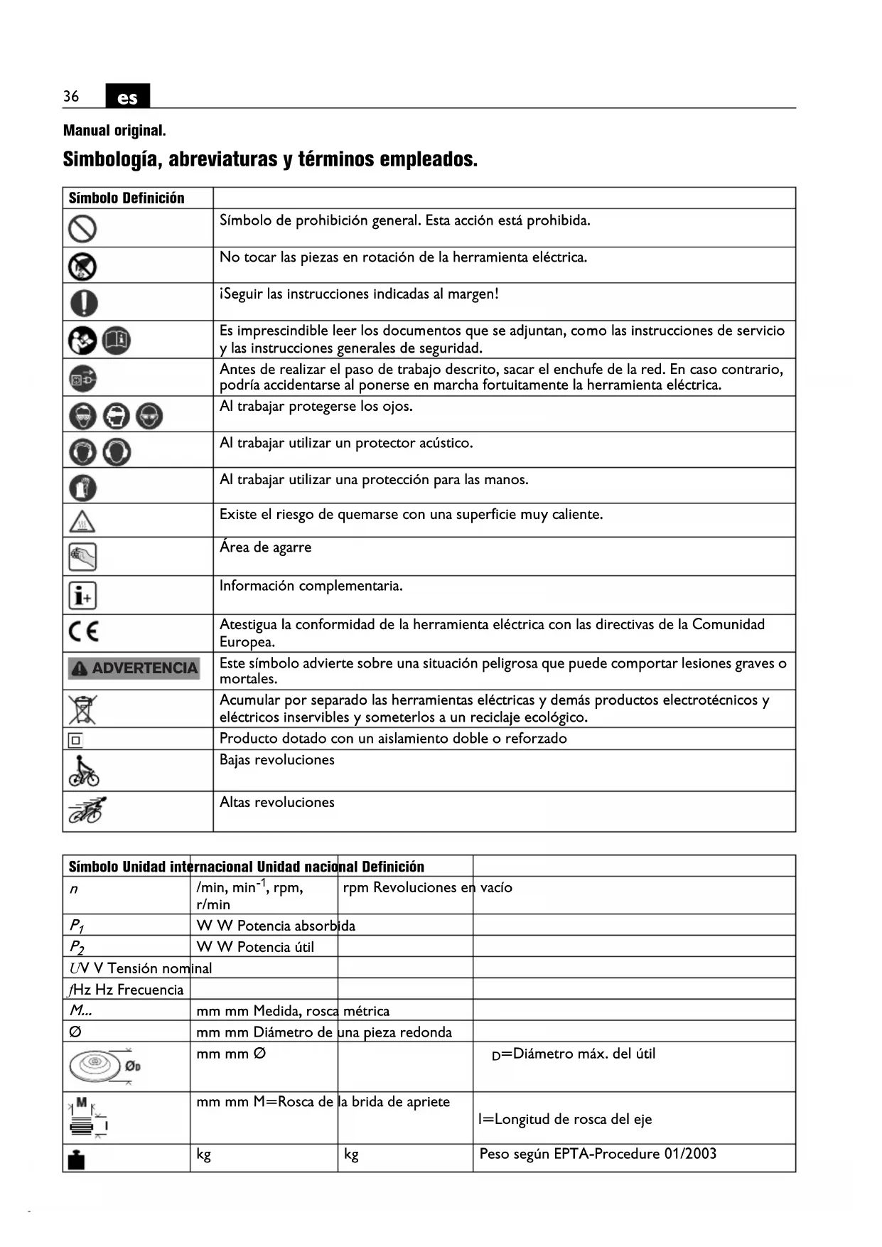 Las revoluciones admisibles delutildeferser como minimumigualesalas revolucionesmaximasindicadas en la herramentaelectrica.Aquellos accesorios que giren aunas revolucionesmayoresalas admisiblespuede llgargar a romperse ysalirdespedidos.