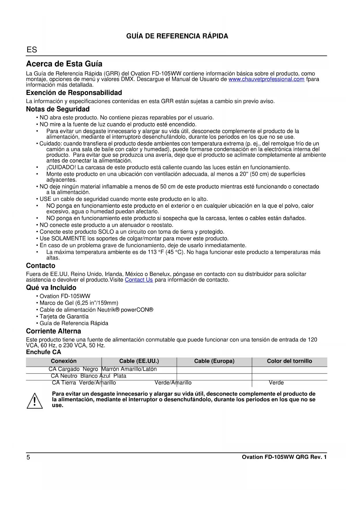 MANUAL DE USUARIO Ovation FD105WW Chauvet