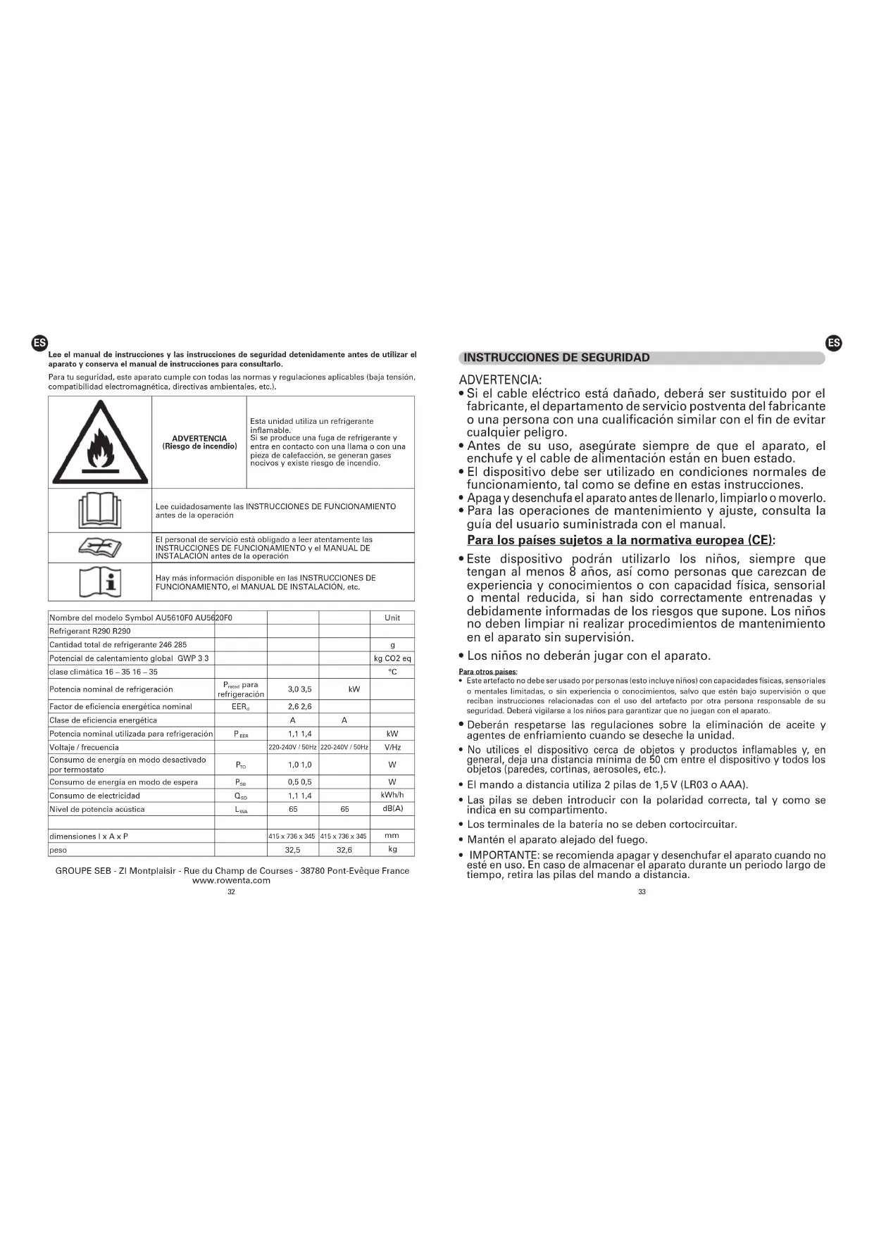 Turbo Eco Sense+ AU5620 - Aire acondicionado ROWENTA - Manual de uso y guía de instrucciones gratis