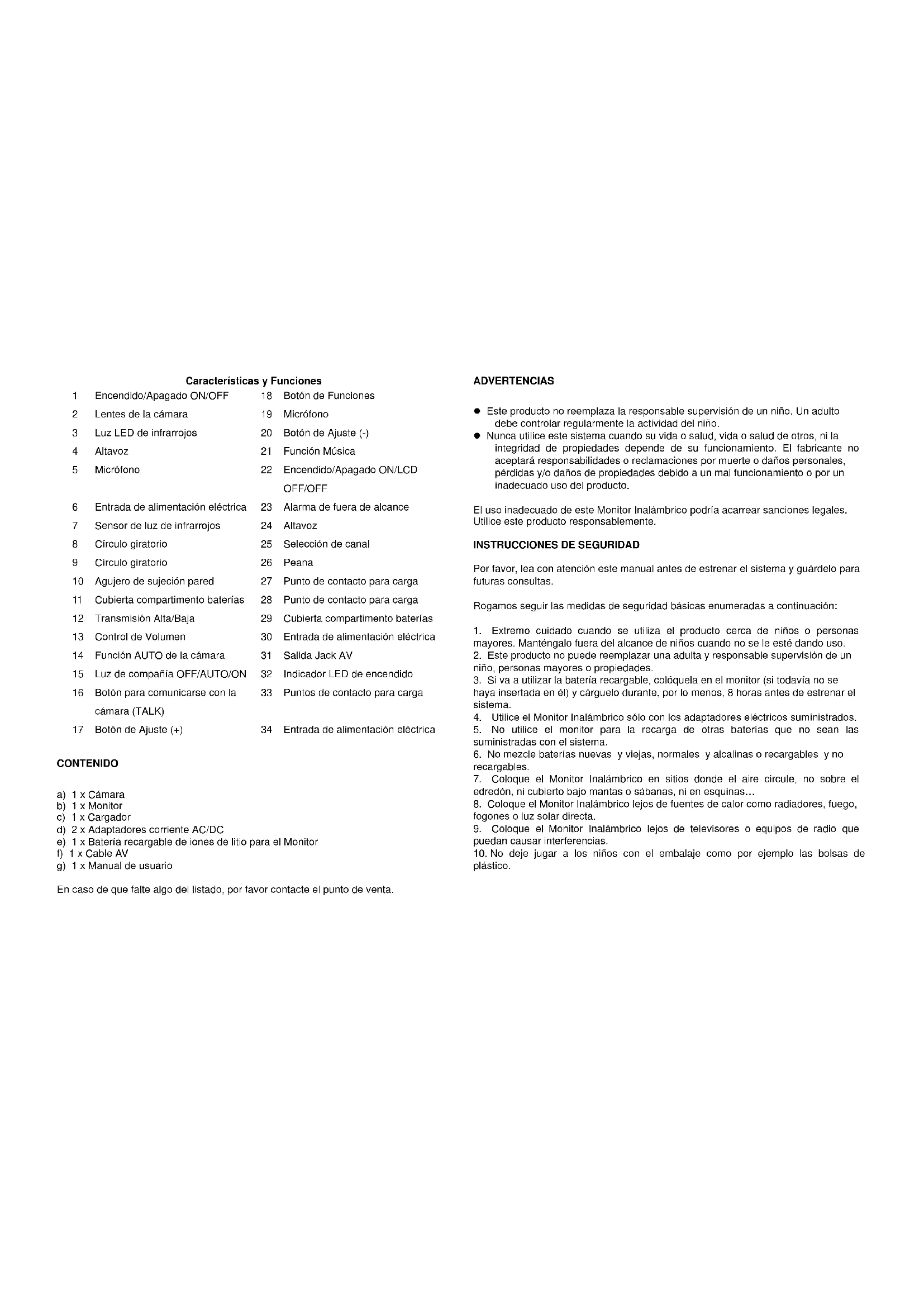 - Este producto no puede reemplazar una adulta y responsable supervisión de un niño, personas mayores o propiedades.