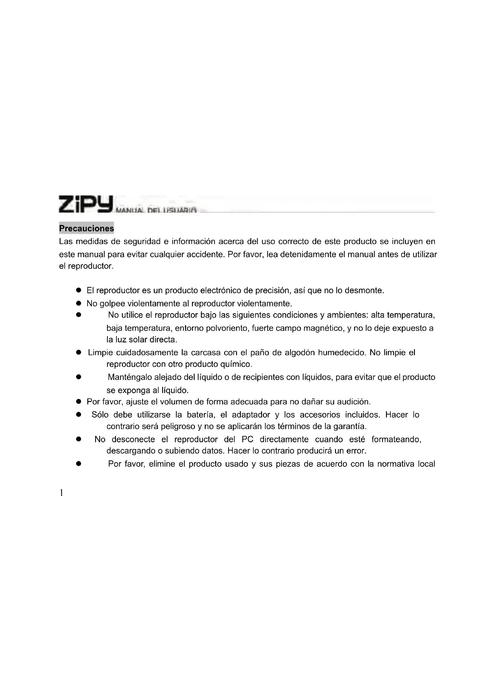 Leopard - Reproductor de mp3 Zipy - Manual de uso y guía de instrucciones gratis