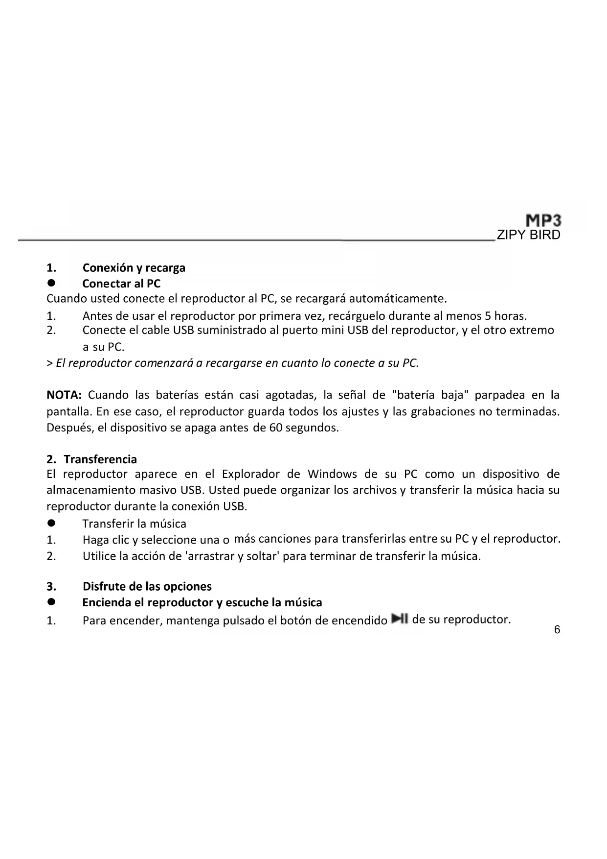 Bird - Reproductor de mp3 Zipy - Manual de uso y guía de instrucciones gratis