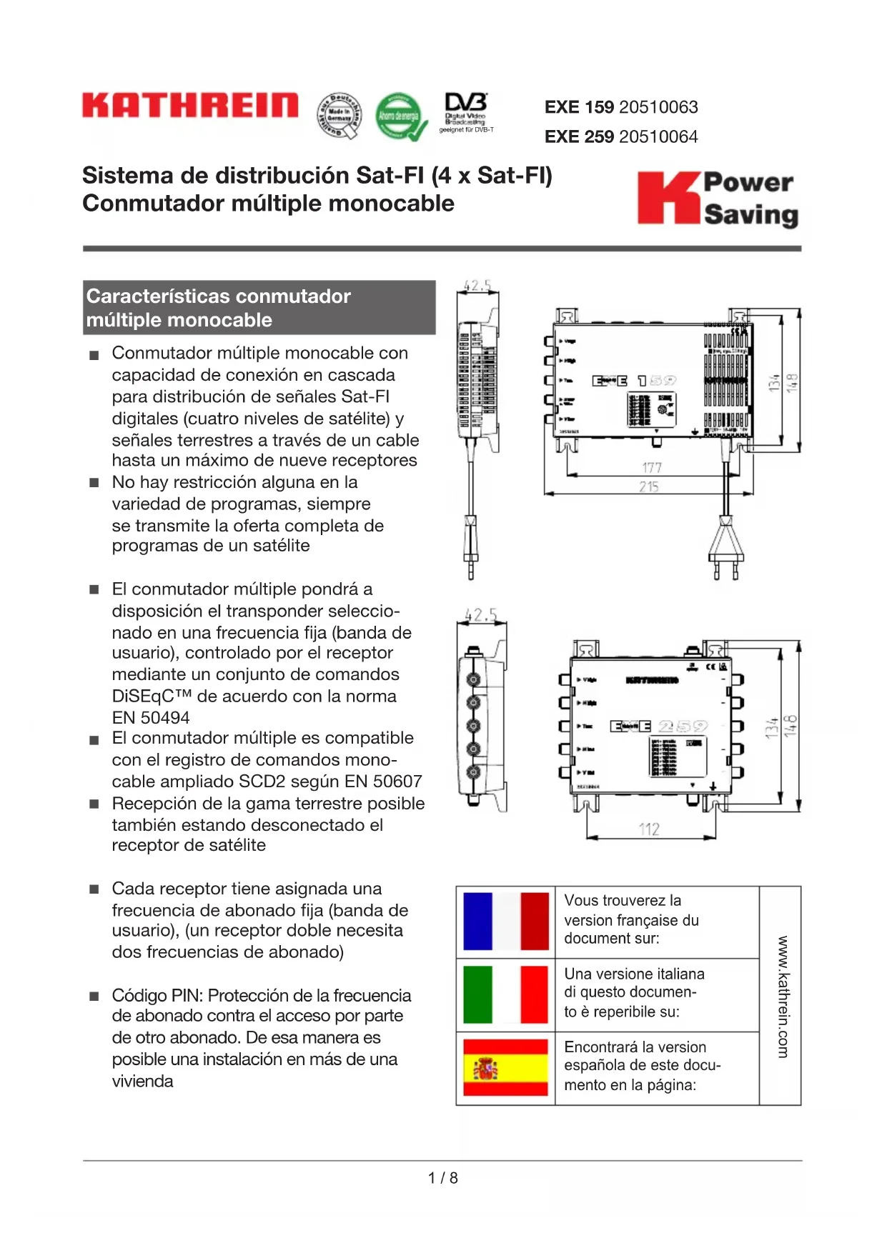 EXE 259 - Divisor satelital KATHREIN - Manual de uso y guía de instrucciones gratis