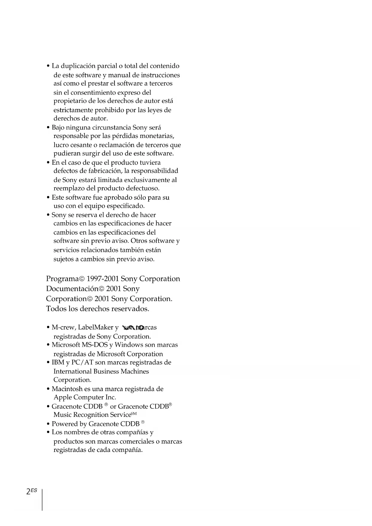 - Sony se reserva el derecho de hacer cambios en las especificaciones de hacer cambios en las especificaciones del software sin previo aviso. Otros software y servicios relacionados también están sujetos a cambios sin previo aviso. Programa 1997-2001 Sony Corporation Documentación 2001 Sony Corporation 2001 Sony Corporation. Todos los derechos reservados.