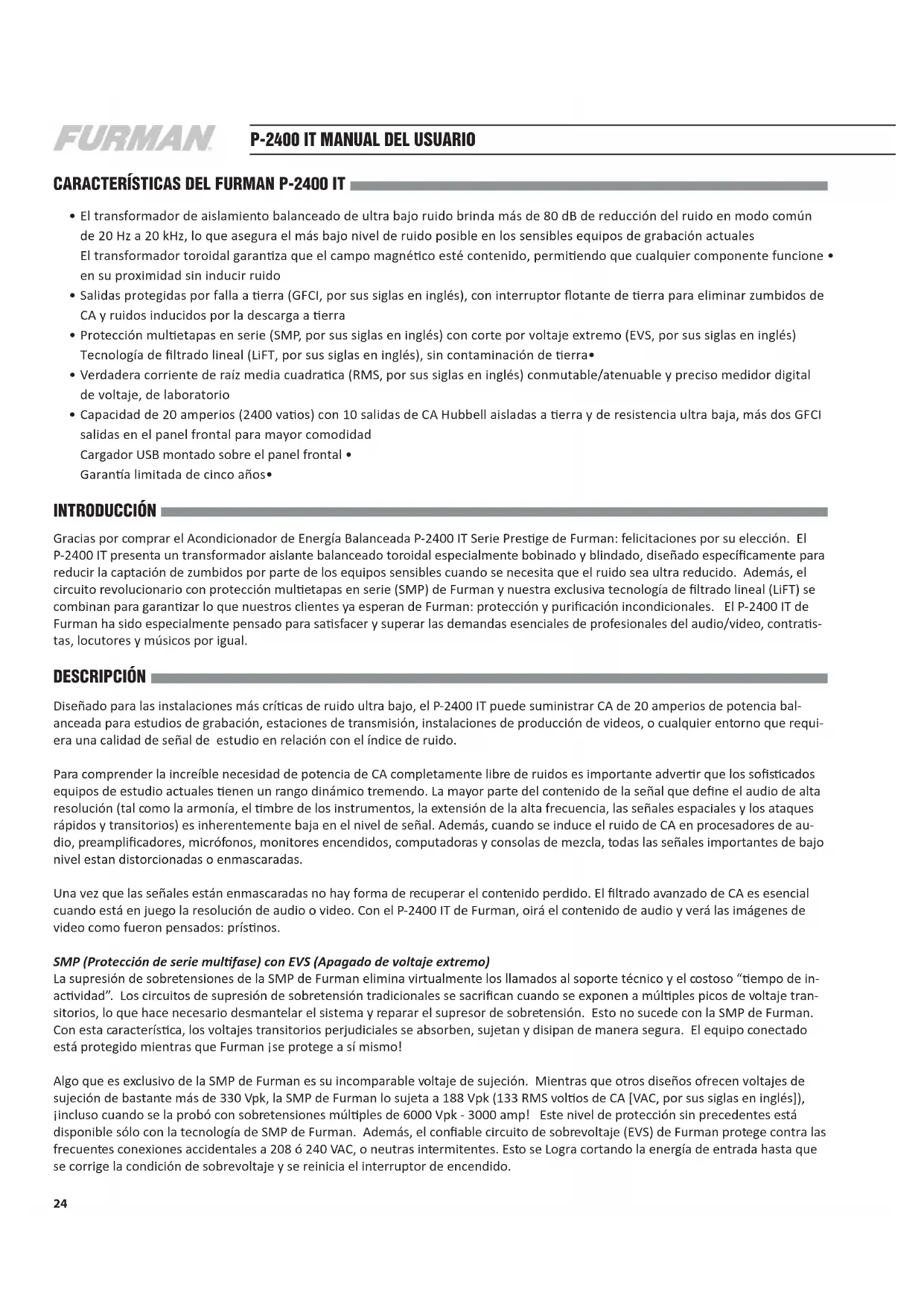 Encuentra gratis el manual del aparato P2400 IT Furman en formato PDF.