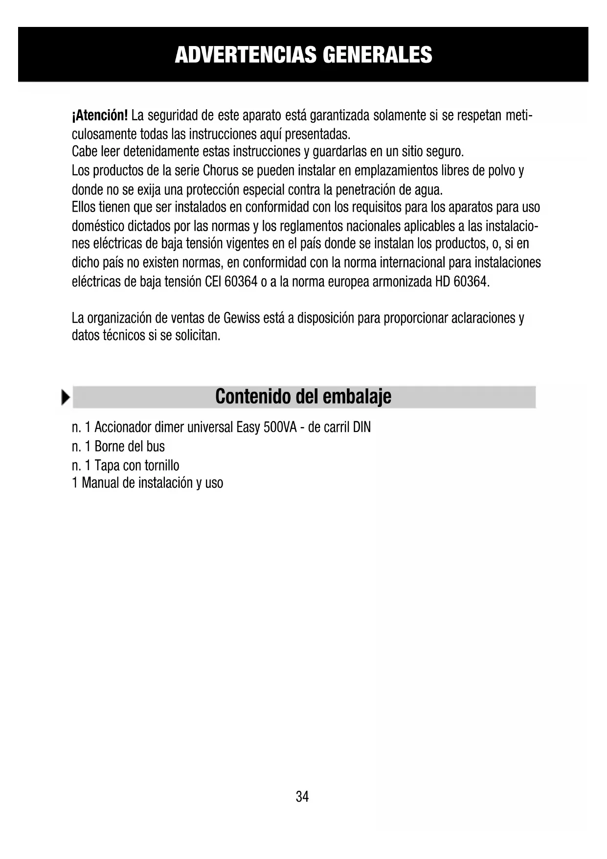 Descarga las instrucciones para tu Hogar inteligente en formato PDF gratis! Encuentra tus instrucciones GW90849 - Gewiss y toma tu dispositivo electrónico nuevamente en la mano. En esta página están publicados todos los documentos necesarios para el uso de su dispositivo. GW90849 de la marca Gewiss.