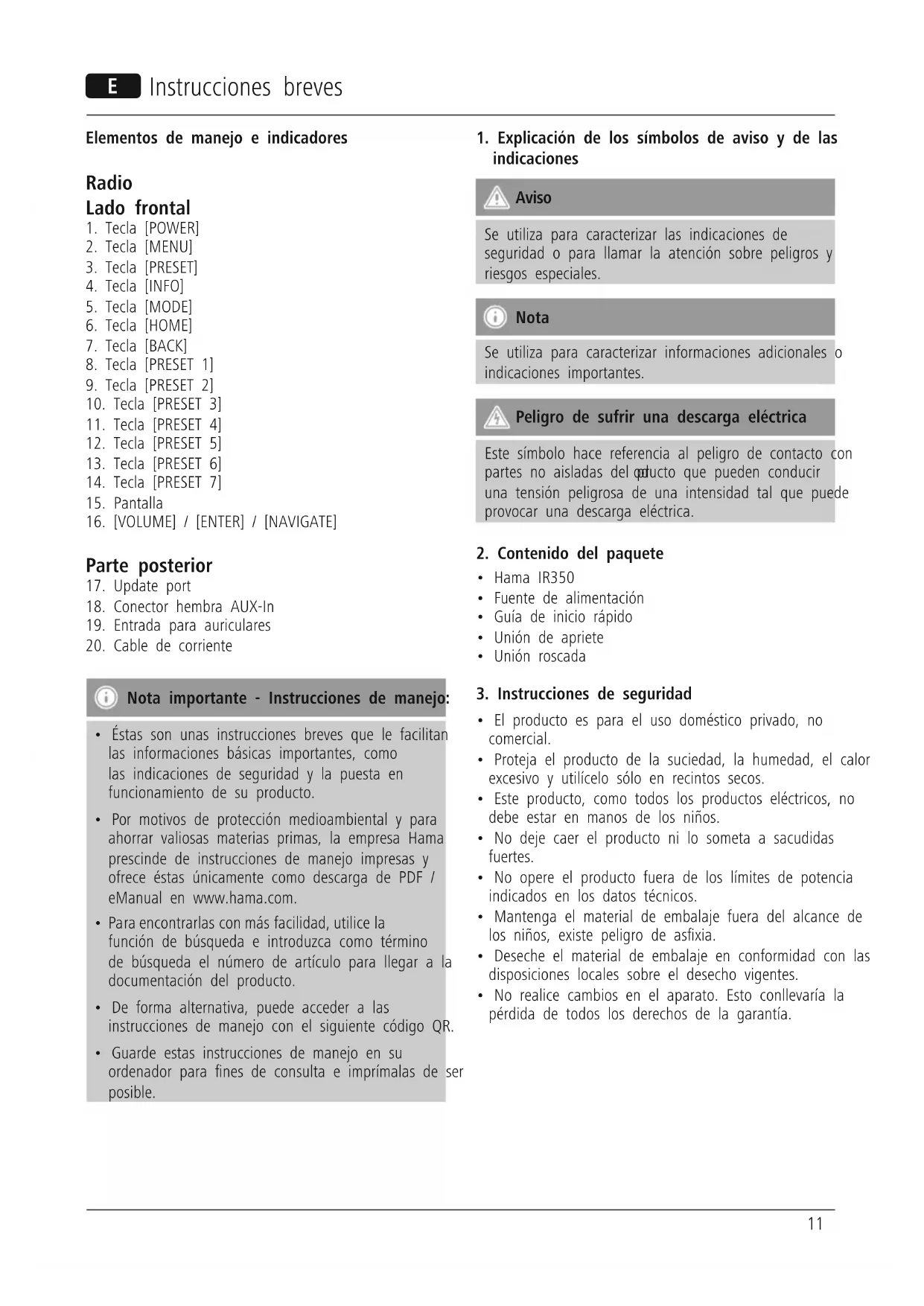 Descarga las instrucciones para tu Radio en formato PDF gratis! Encuentra tus instrucciones IR350 - HAMA y toma tu dispositivo electrónico nuevamente en la mano. En esta página están publicados todos los documentos necesarios para el uso de su dispositivo. IR350 de la marca HAMA.