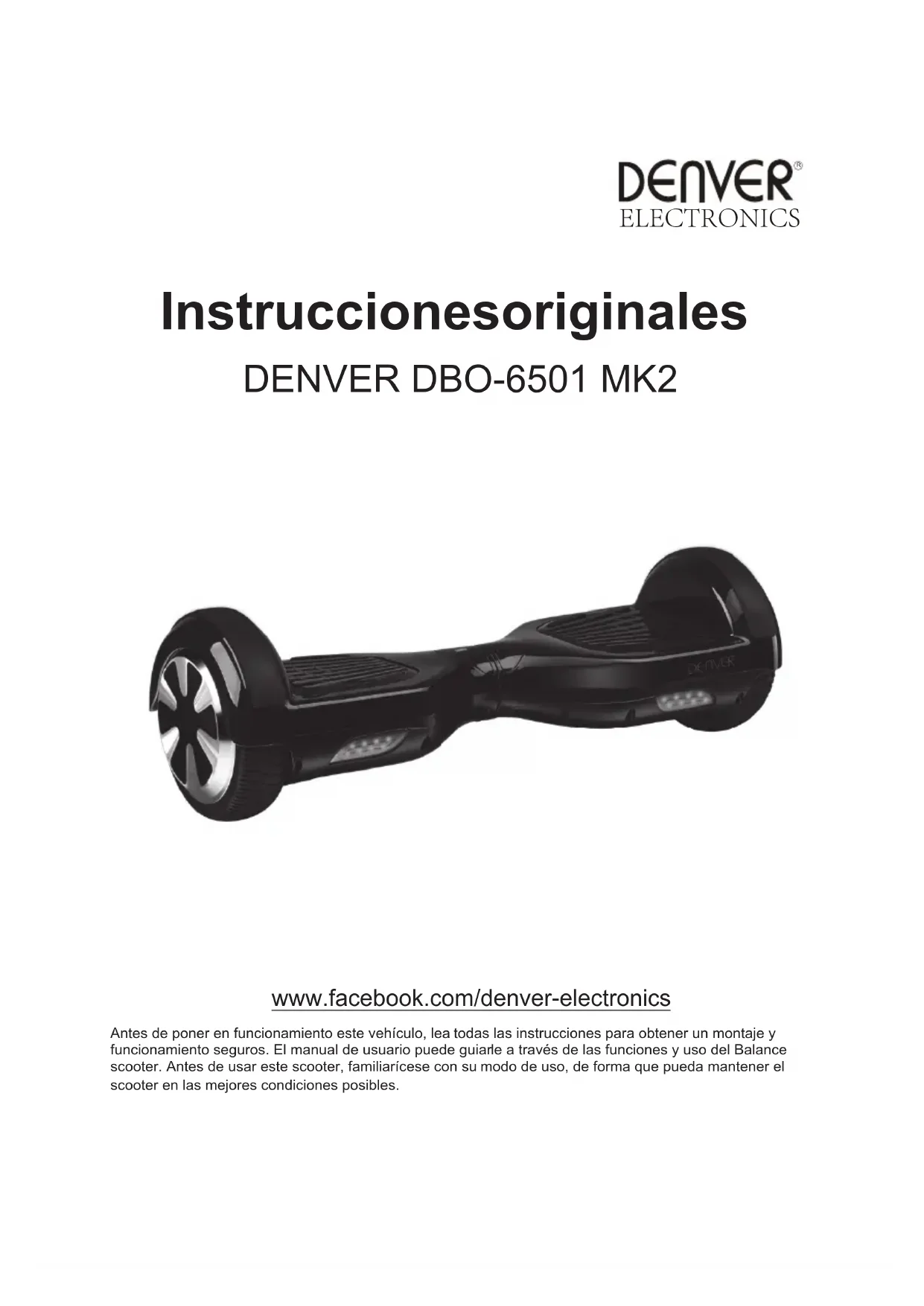 Descarga las instrucciones para tu Scooter autoequilibrado en formato PDF gratis! Encuentra tus instrucciones DBO6501 MK2 - DENVER y toma tu dispositivo electrónico nuevamente en la mano. En esta página están publicados todos los documentos necesarios para el uso de su dispositivo. DBO6501 MK2 de la marca DENVER.