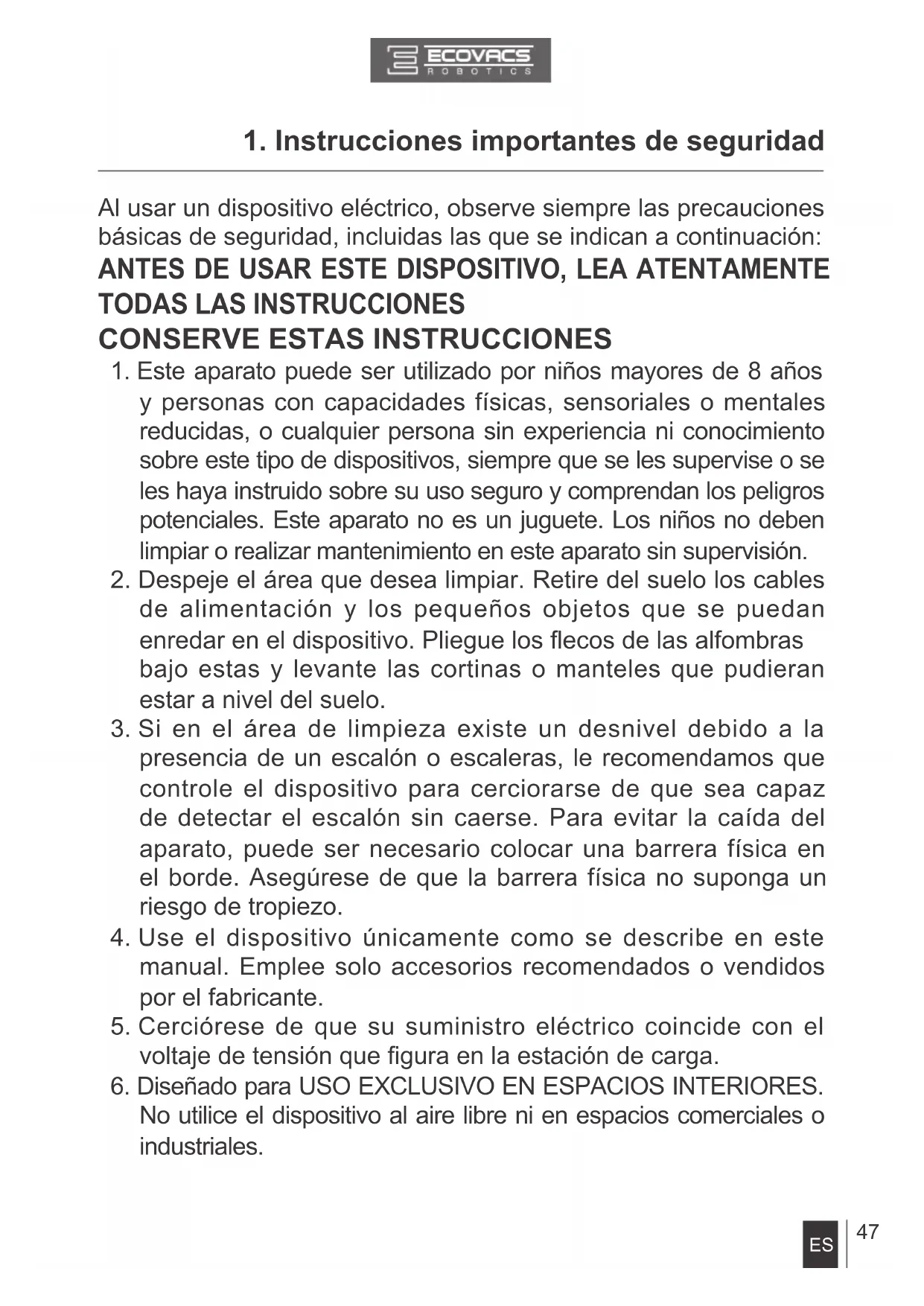 Manual de instrucciones. ECOVACS ROBOTICS no asume ninguna responsabilidad por los daños o lesiones causados por un uso inadecuado.