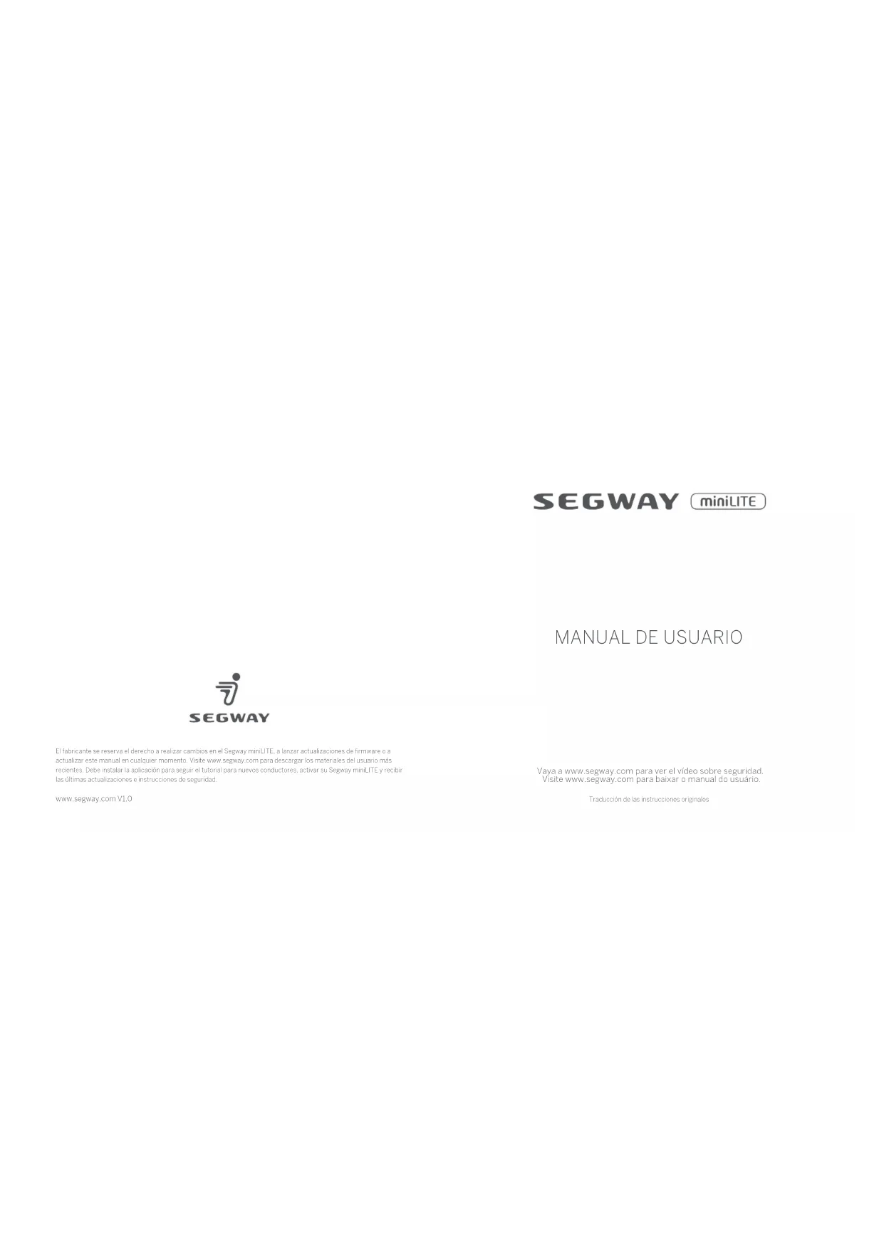 1 Seguridad en la conducción 1. El miniLITE es un producto recreativo. Para dominar las habilidades de conducción, se necesita práctica. Ni Ninebot Inc. (significa Ninebot (Beijing) Tech Co., Ltd. Y sus subisidiarias y filiales) ni Segway Inc. son responsables de ninguna lesión ni daños causados por la inexperiencia de un conductor o por no seguir las instrucciones de este documento.