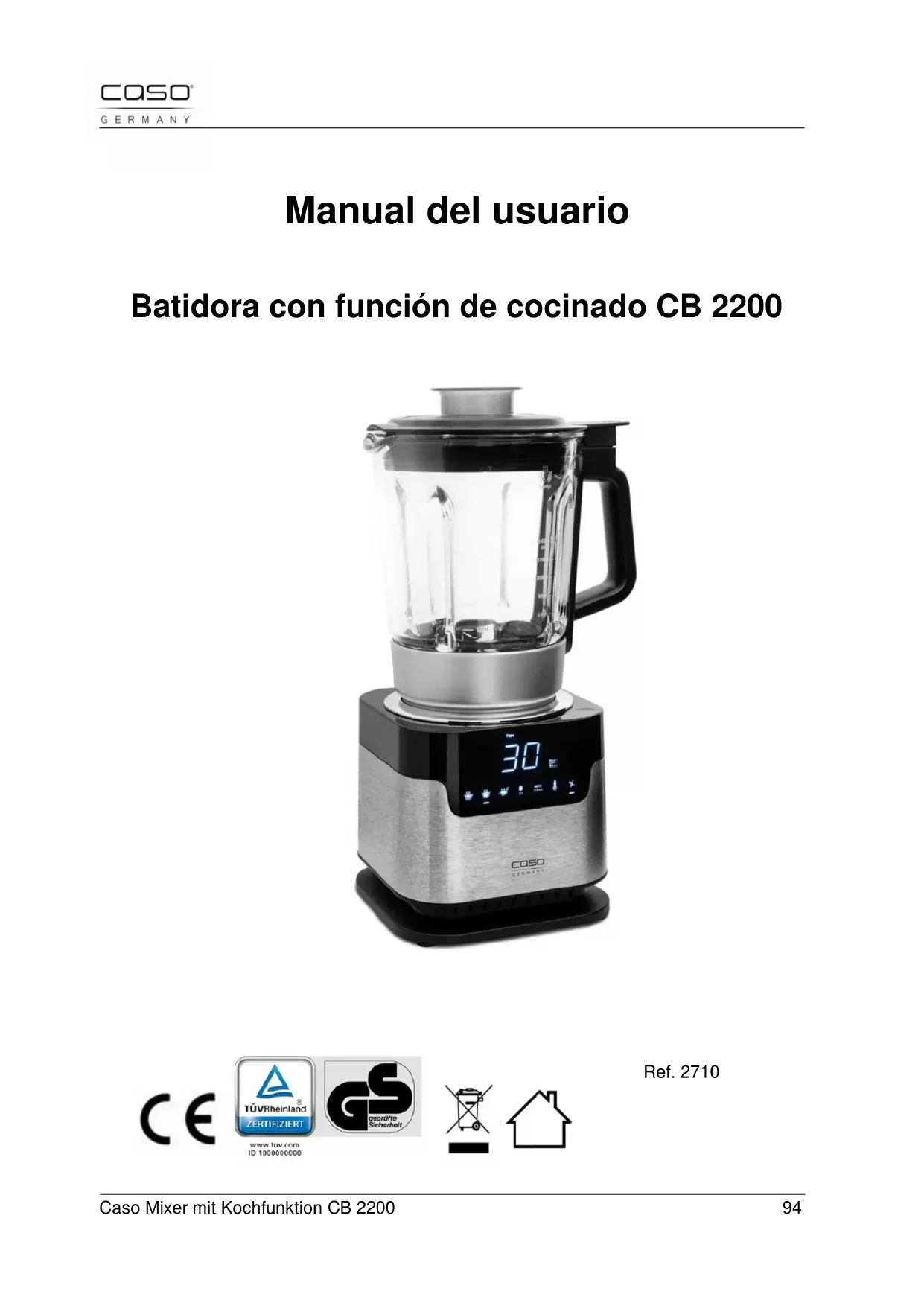 Manual del usuario Batidora con función de cocinado CB 2200 Ref. 2710Caso Mixer mit Kochfunktion CB 2200 95 41 Manual del usuario