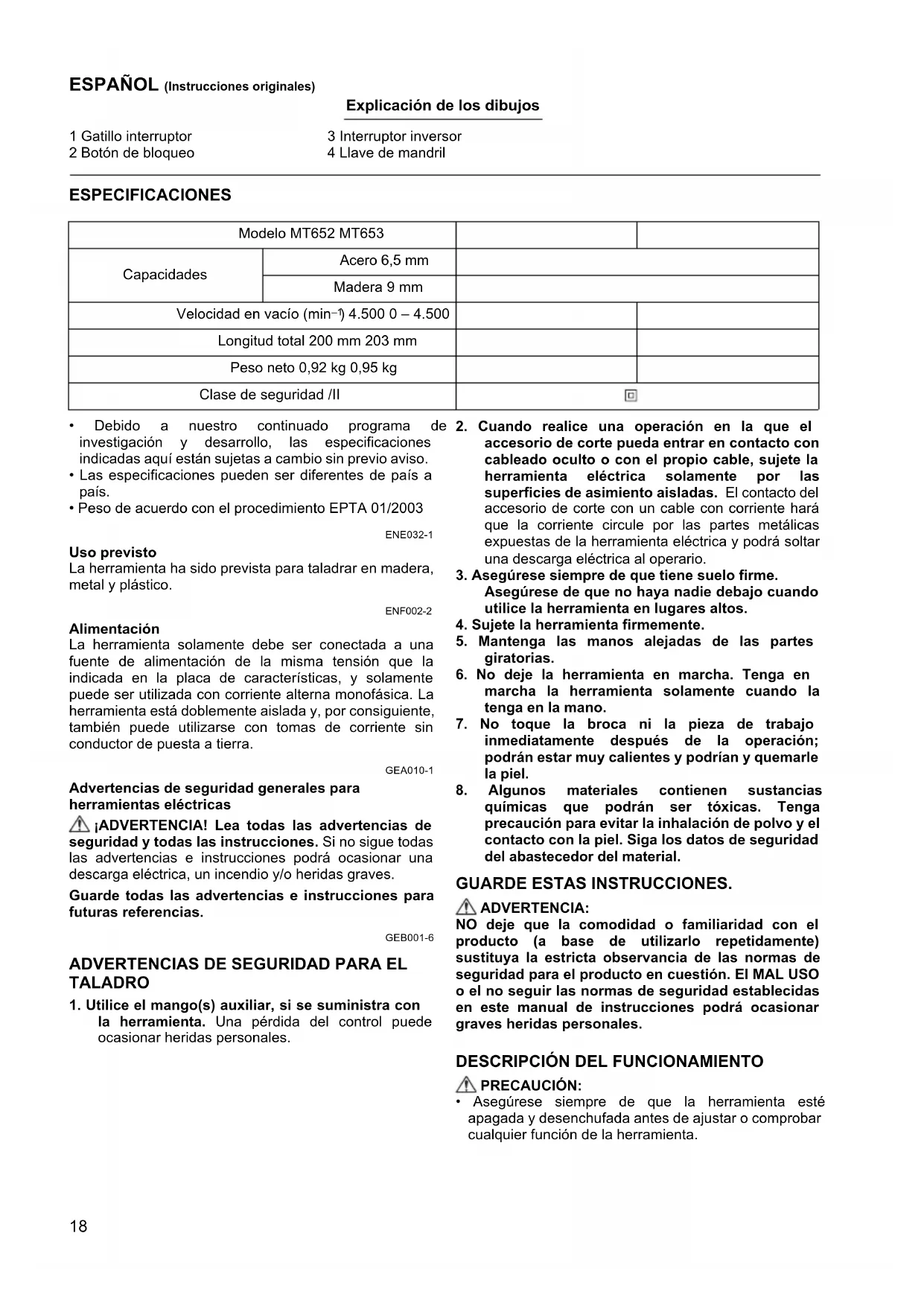 Encuentra gratis el manual del aparato MT653 Maktec en formato PDF.