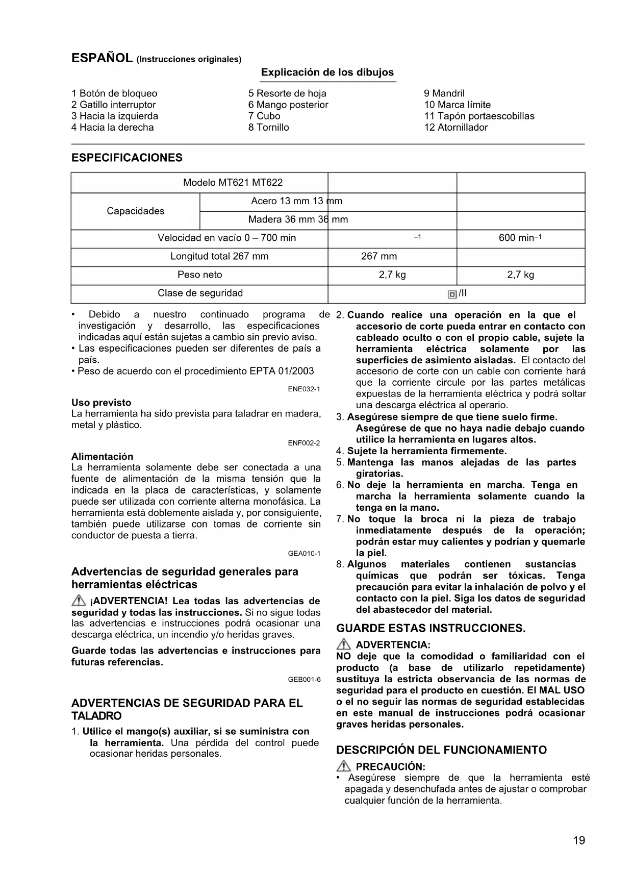 MANUAL DE USUARIO MT621 Maktec