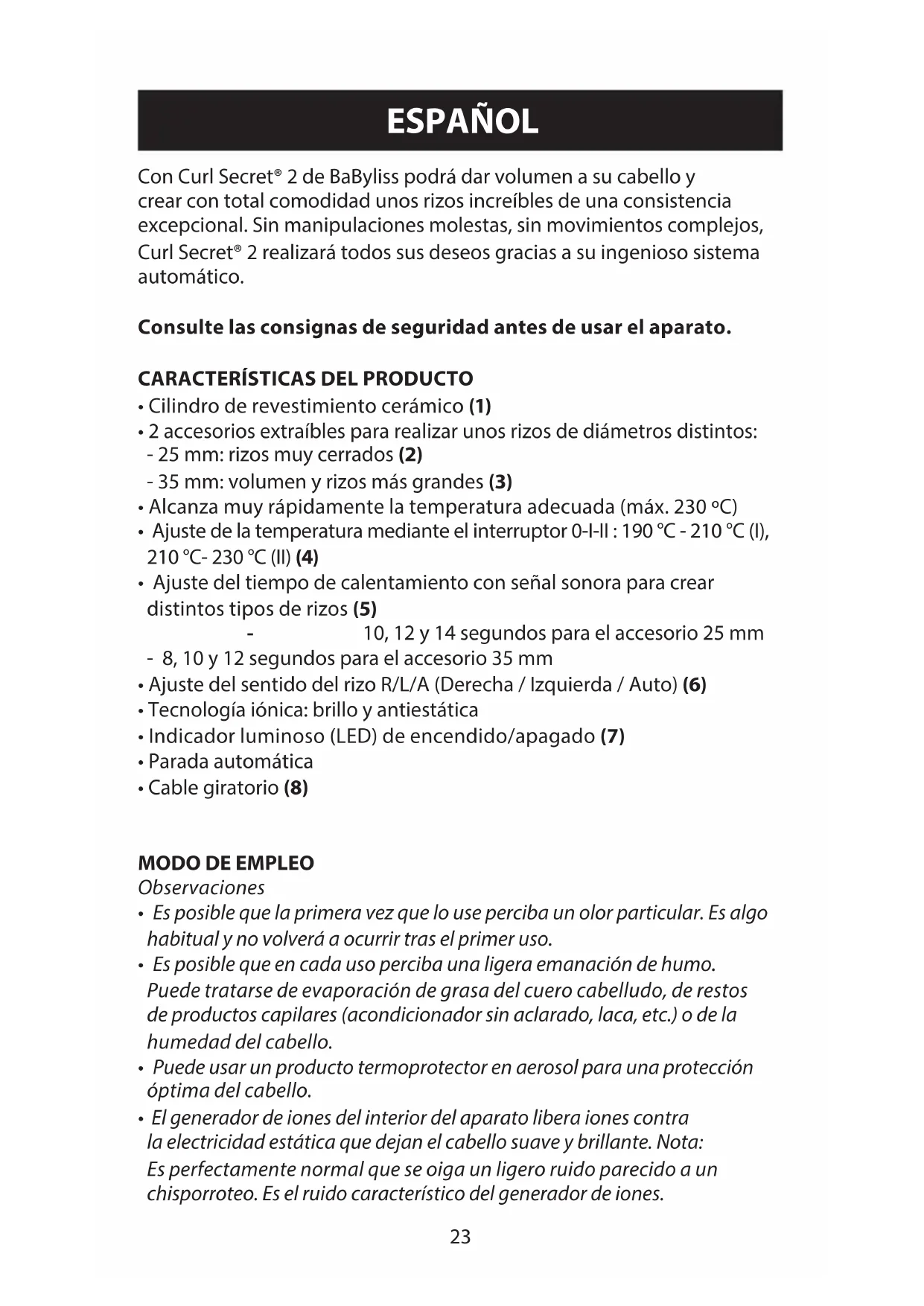 MANUAL DE USUARIO Curl Secret C1300E BABYLISS