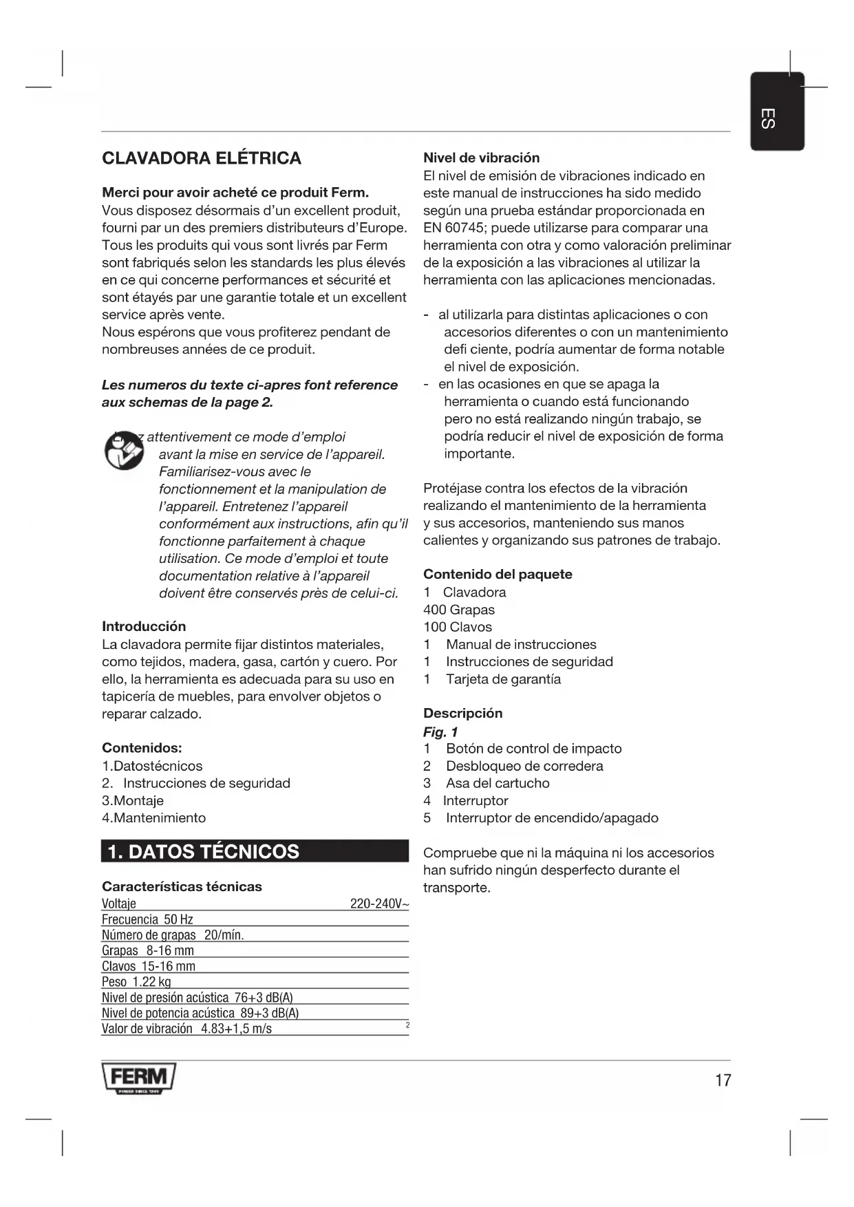 ETM1004 - Grapadora Ferm - Manual de uso y guía de instrucciones gratis