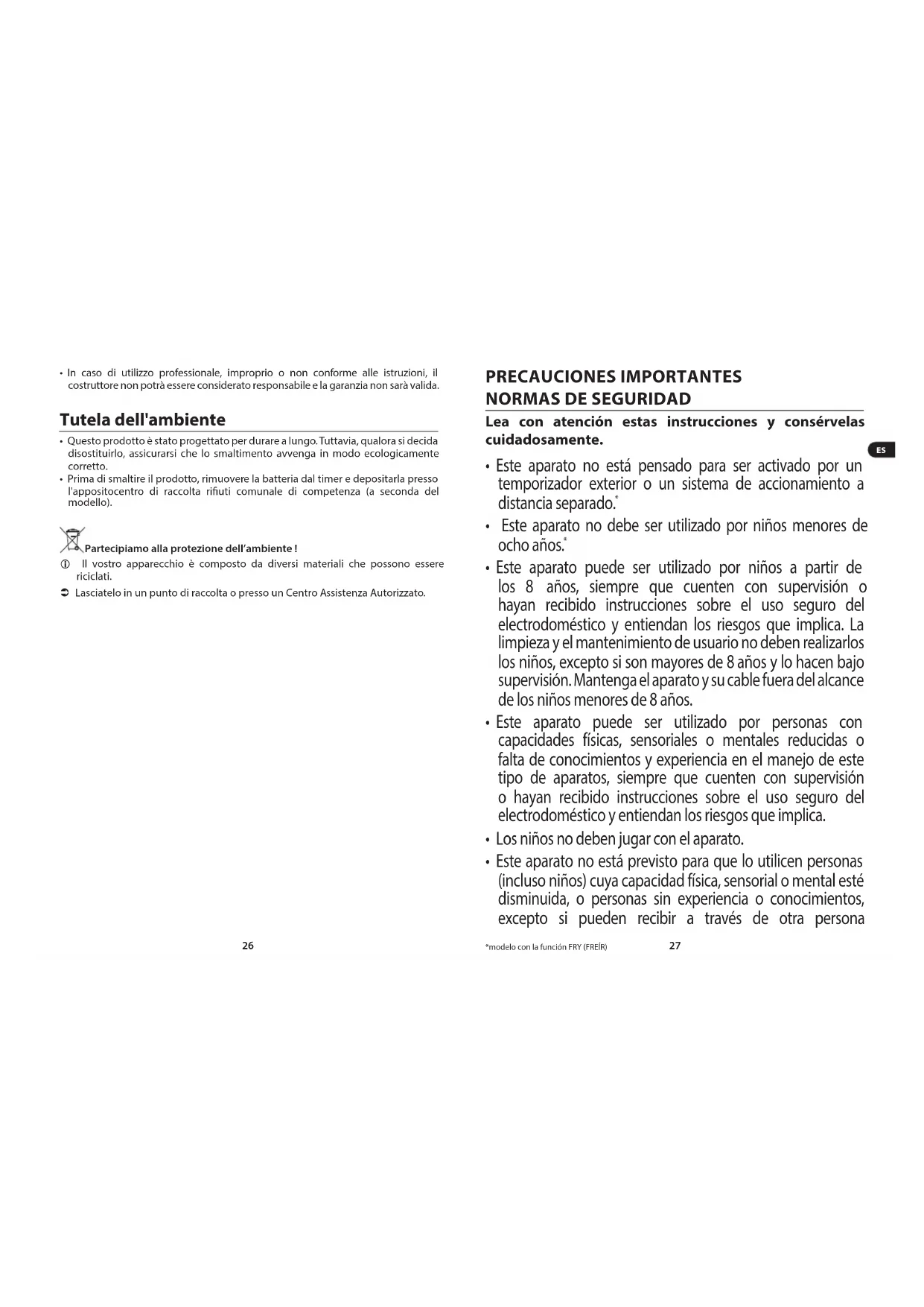 - Antes de desechar este aparato, extraiga la batería del temporizador y deshágase de ella en un contenedor de recogida de pilas (según el modelo). ¡ ¡ Participe en la conservación del medio ambiente ! ! Su electrodoméstico contiene materiales recuperables y/o reciclables. Entréguelo al nal de su vida útil, en un Centro de Recogida Especíco o en uno de nuestros Servicios Ociales Post Venta donde será tratado de forma adecuada3332