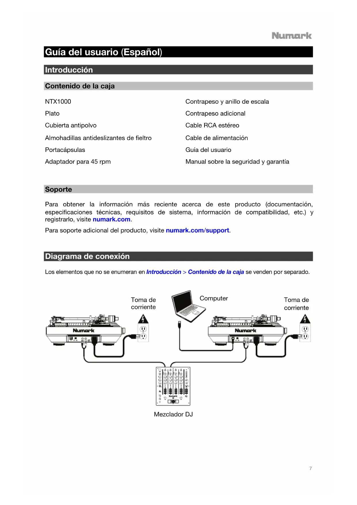 NXT1000 - Tocadiscos NUMARK - Manual de uso y guía de instrucciones gratis