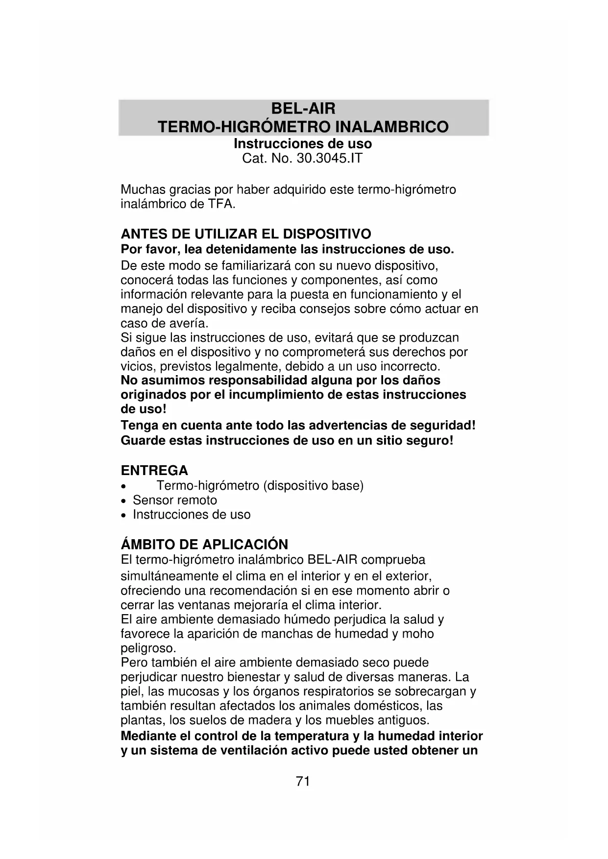 MANUAL DE USUARIO BelAir 30.3045.IT TFA