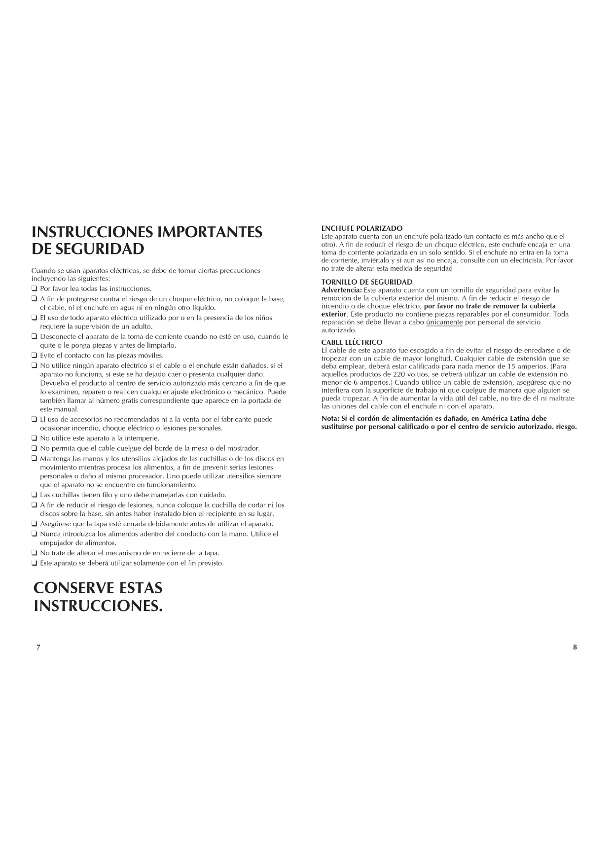 Mantenga las manos y los utensilios alejados de las cucillas o de los discos en movimiento cuando procesas los alimentos, a fin de prevenir serias lesiones personales o daño al mismo procesador. Uno可以选择 usar utensilios siempre que el aparato no se ocurren en configuracion.