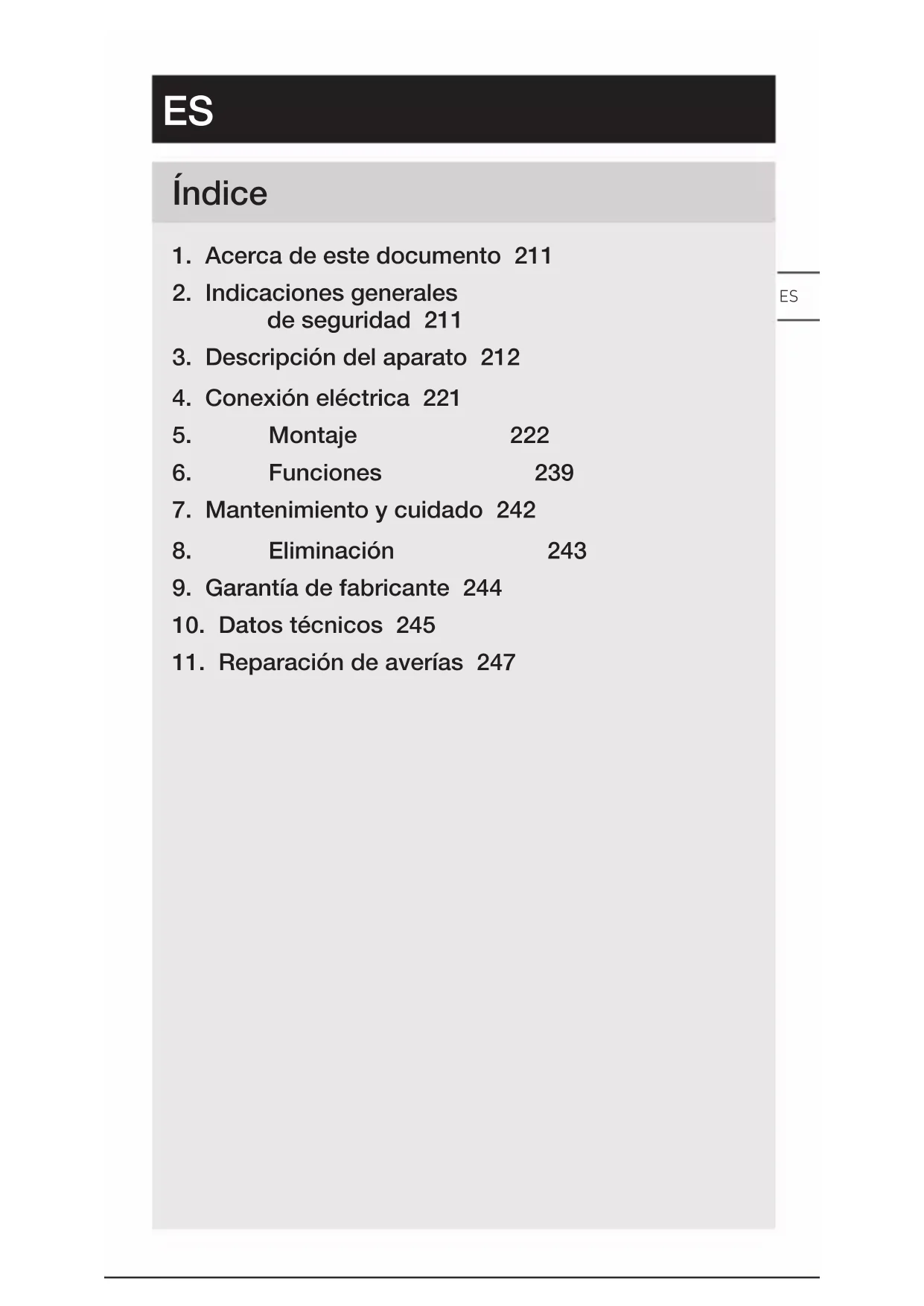 - Configuración vía app (solo SC). “6. Funciones”– 236 – Índice