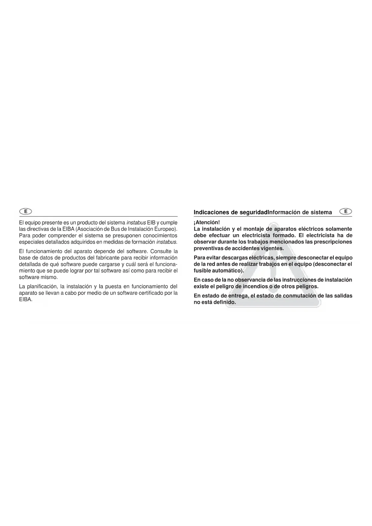 El equipo presente es un producto del sistema instabus EIB y cumple las directivas de la EIBA (Asociación de Bus de Instalación Europeo). Para poder comprender el sistema se presuponen conocimientos especiales detallados adquiridos en medidas de formación instabus.