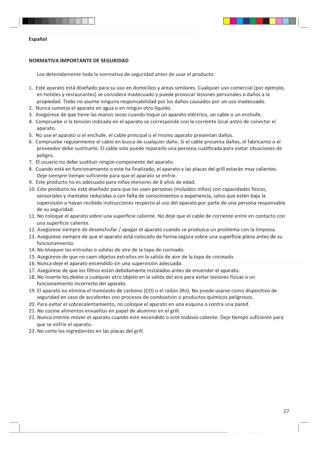 en hoteles y restaurantes) se considera inadecuado y puede provocar lesiones personales o daños a la propiedad. Trebs no asume ninguna responsabilidad por los daños causados por un uso inadecuado.