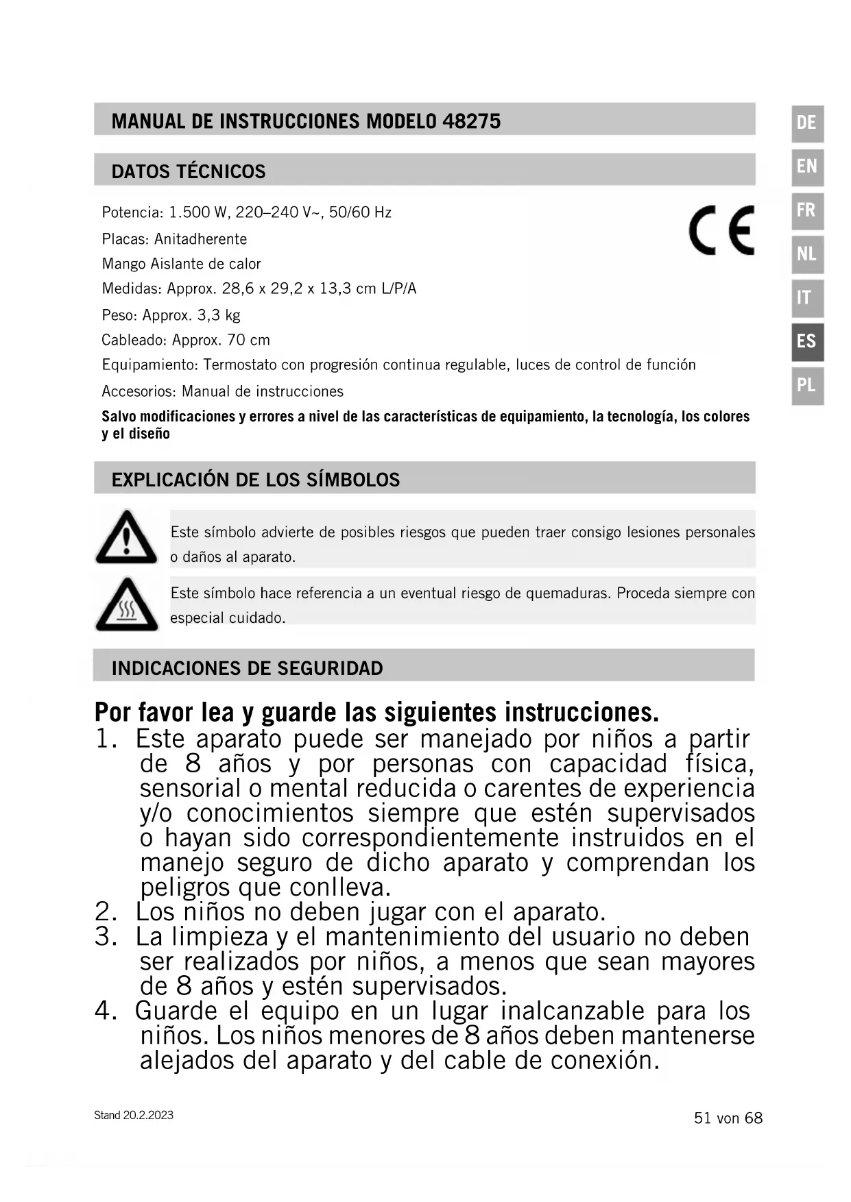 Manual de Instrucciones modelo 48275