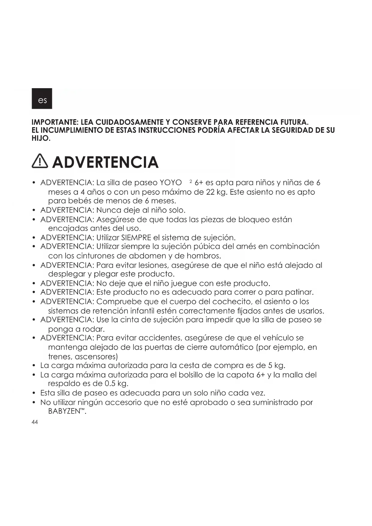 MANUAL DE USUARIO YOYO 6+ BabyZen