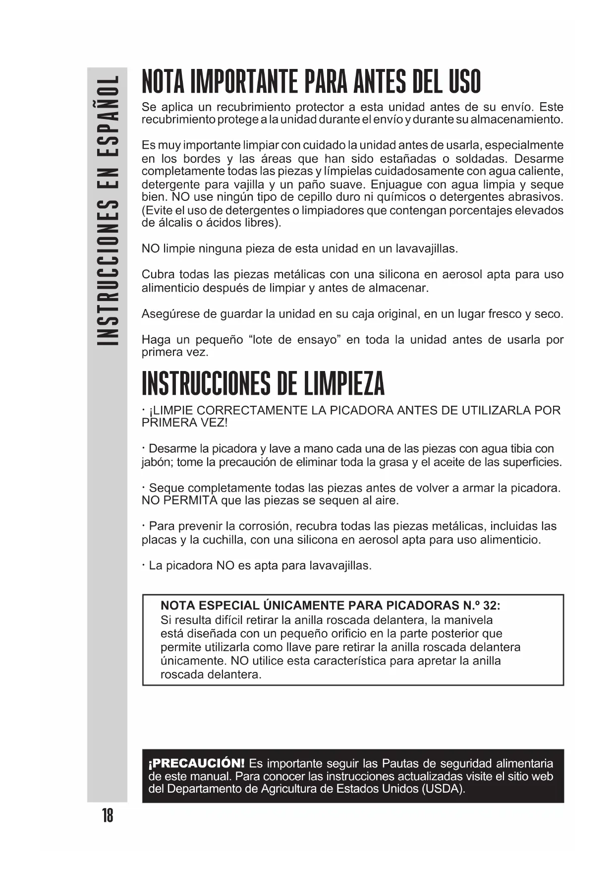 ·jLIMPIE CORRECTAMENTE LA PICADORA ANTES DE UTILIZARLA POR PRIMERA VEZ!