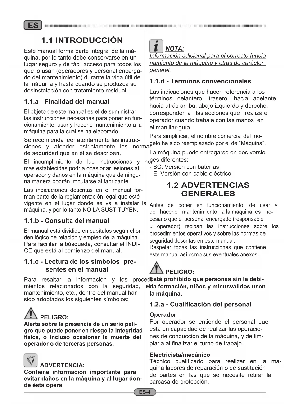 ES Español.... ES -1 (Traducción de las instrucciones originales)