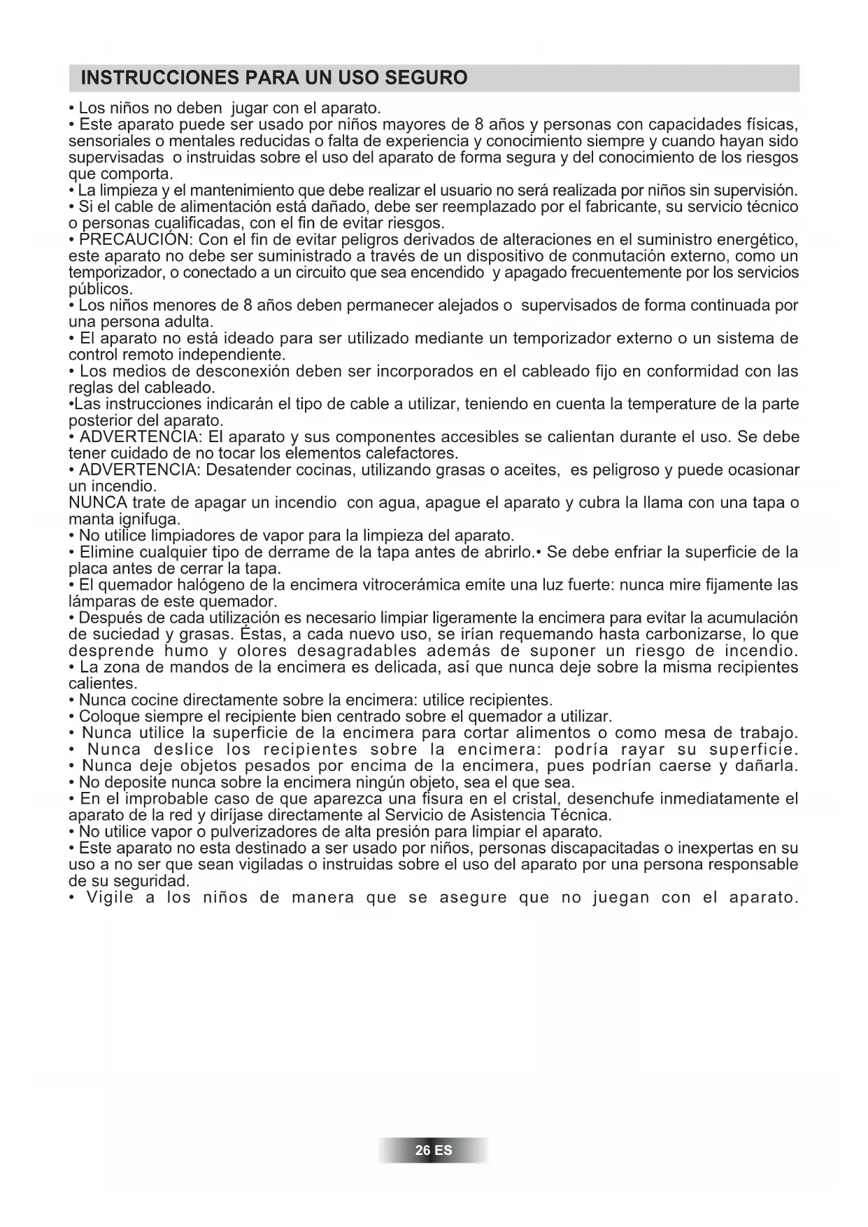 - Este aparato no esta destinado a ser uso por niños, personas discapacitasas o inexpertas en su uso a no ser que Sean vigiladas o instruidas sobre el uso del aparato por una persona responsable de su seguridad.