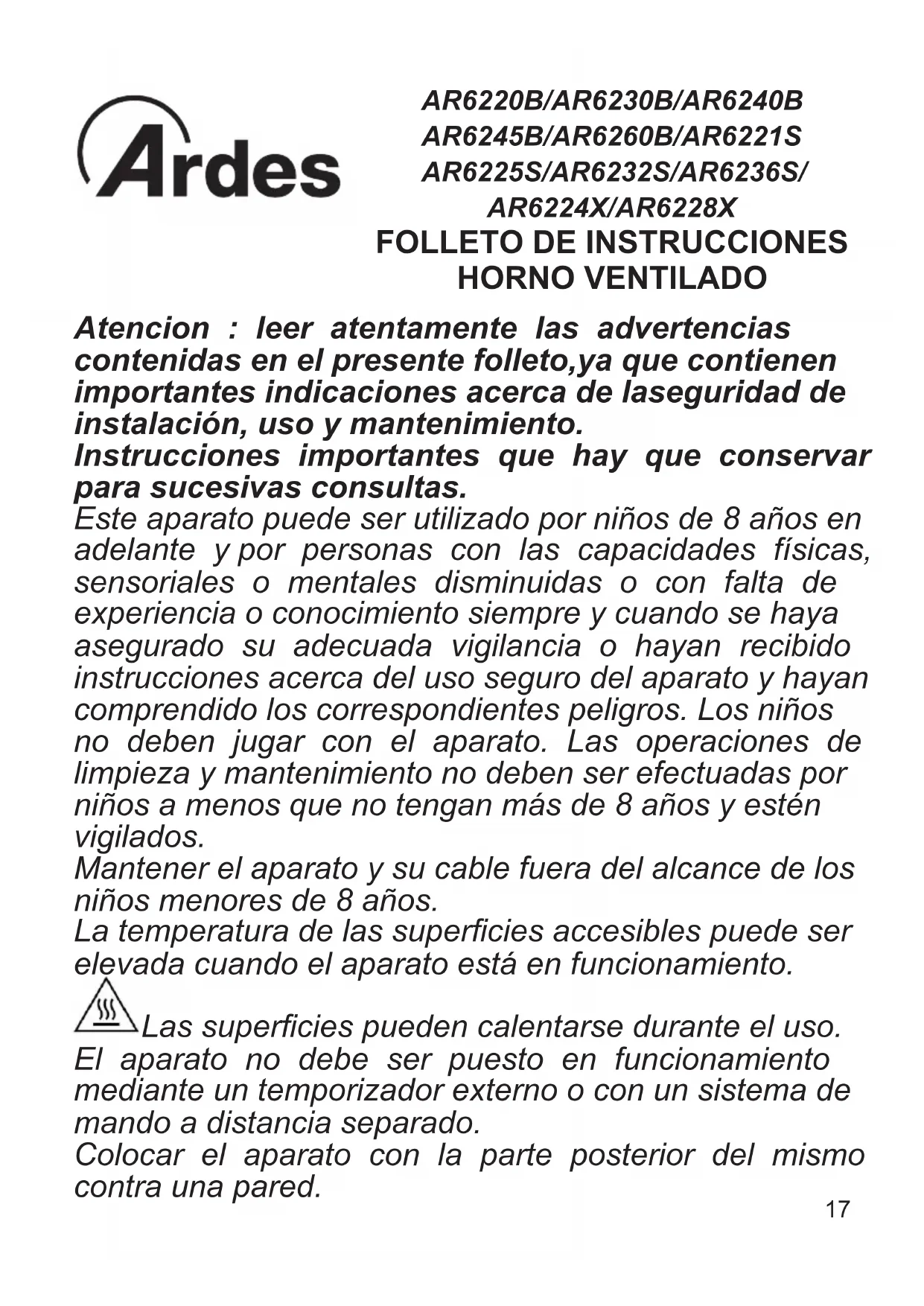 AR6220B - Horno ARDES - Manual de uso y guía de instrucciones gratis
