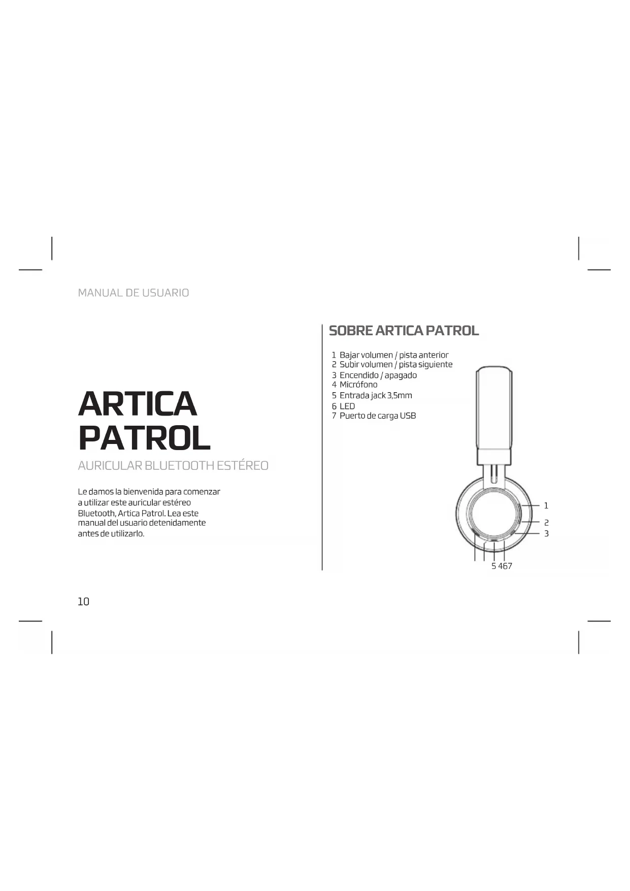 Le damos la bienvenida para comenzar a utilizar este auricular estéreo Bluetooth, Artica Patrol. Lea este manual del usuario detenidamente antes de utilizarlo.