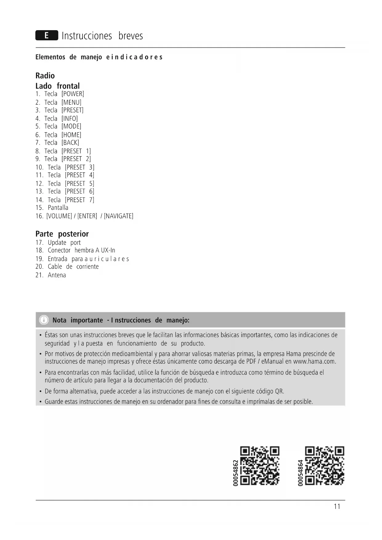 - Pormotivos de protección medioambiental yparaahorrar valiosas materias primas, la empresa Hama prescinde de instrucciones de manejo impresas yofrece éstas únicamente como descarga de PDF /eManual en www.hama.com.