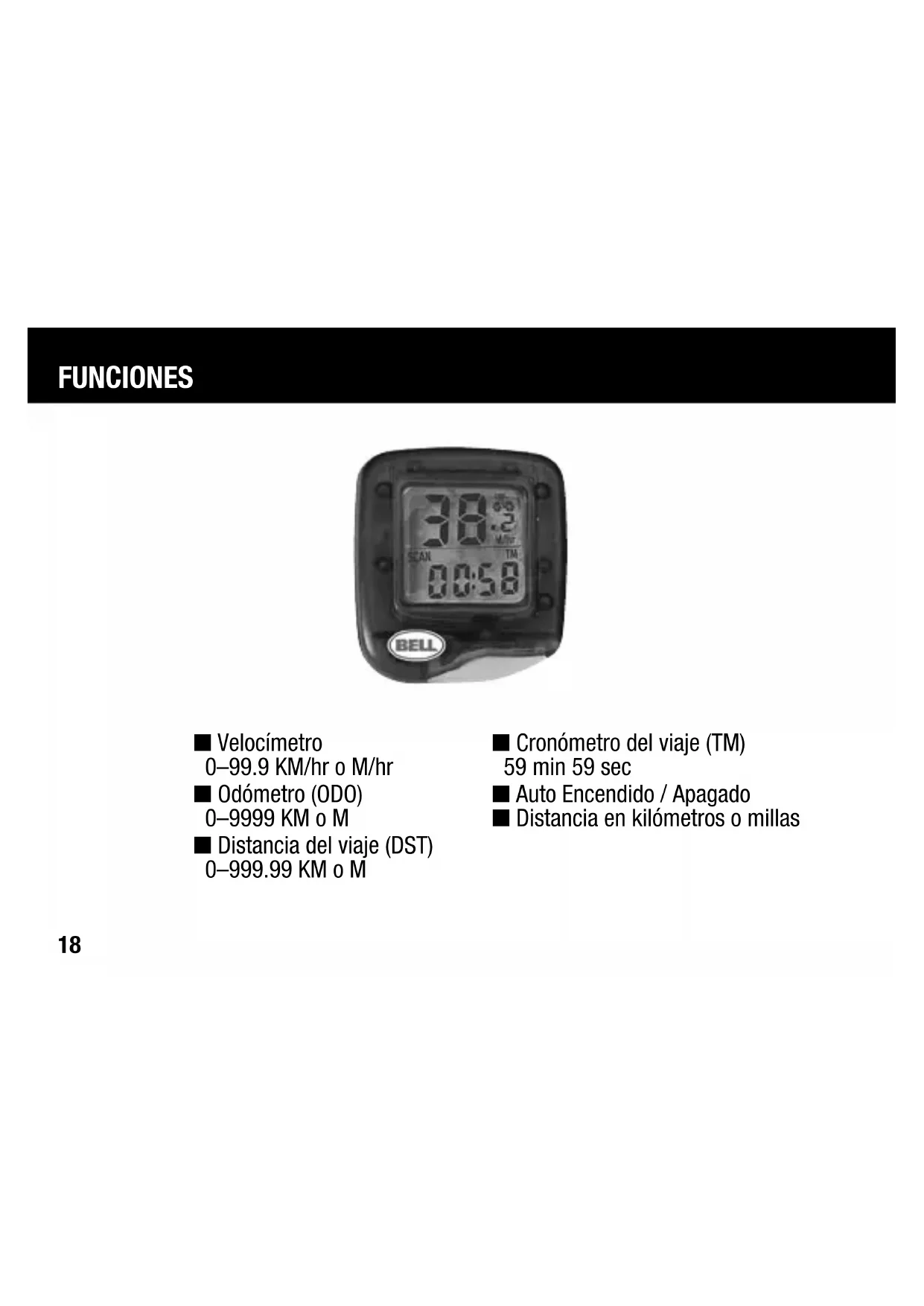 Nota: Si reestablece el odómetro, todas las otheras functions serán reestablecidas a zero y seranecessary ingresar de nuevo el taman de la rueda.