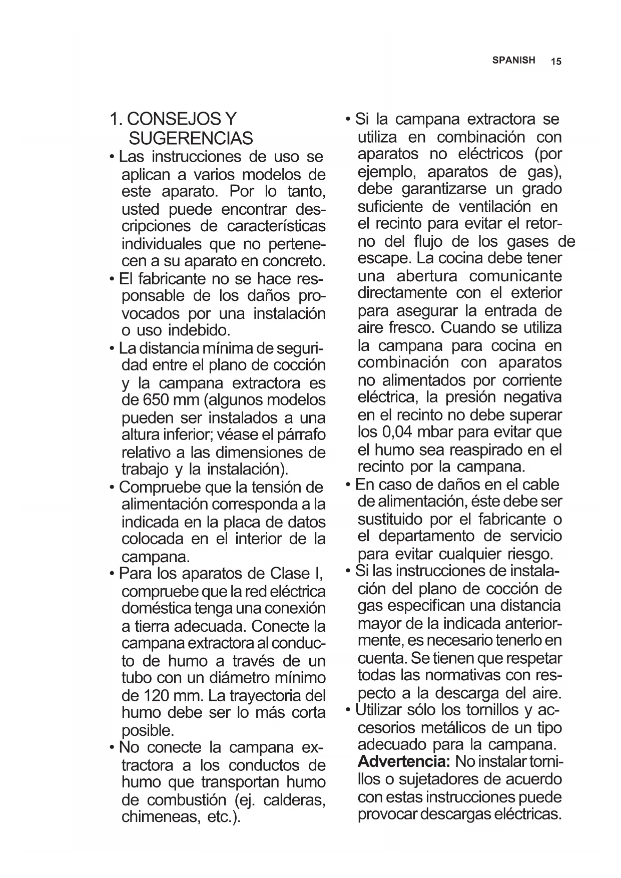 - No deje nunca llamas altas bajo la campana cuando está en funcionamiento.