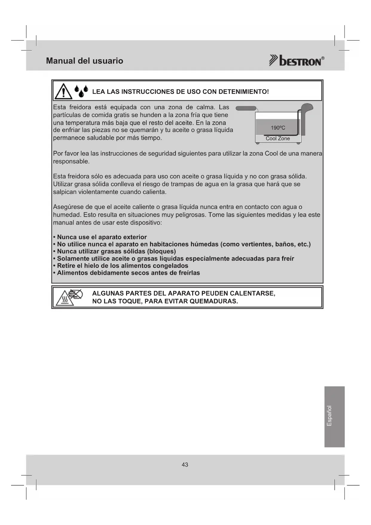 AF450B - Freidora BESTRON - Manual de uso y guía de instrucciones gratis