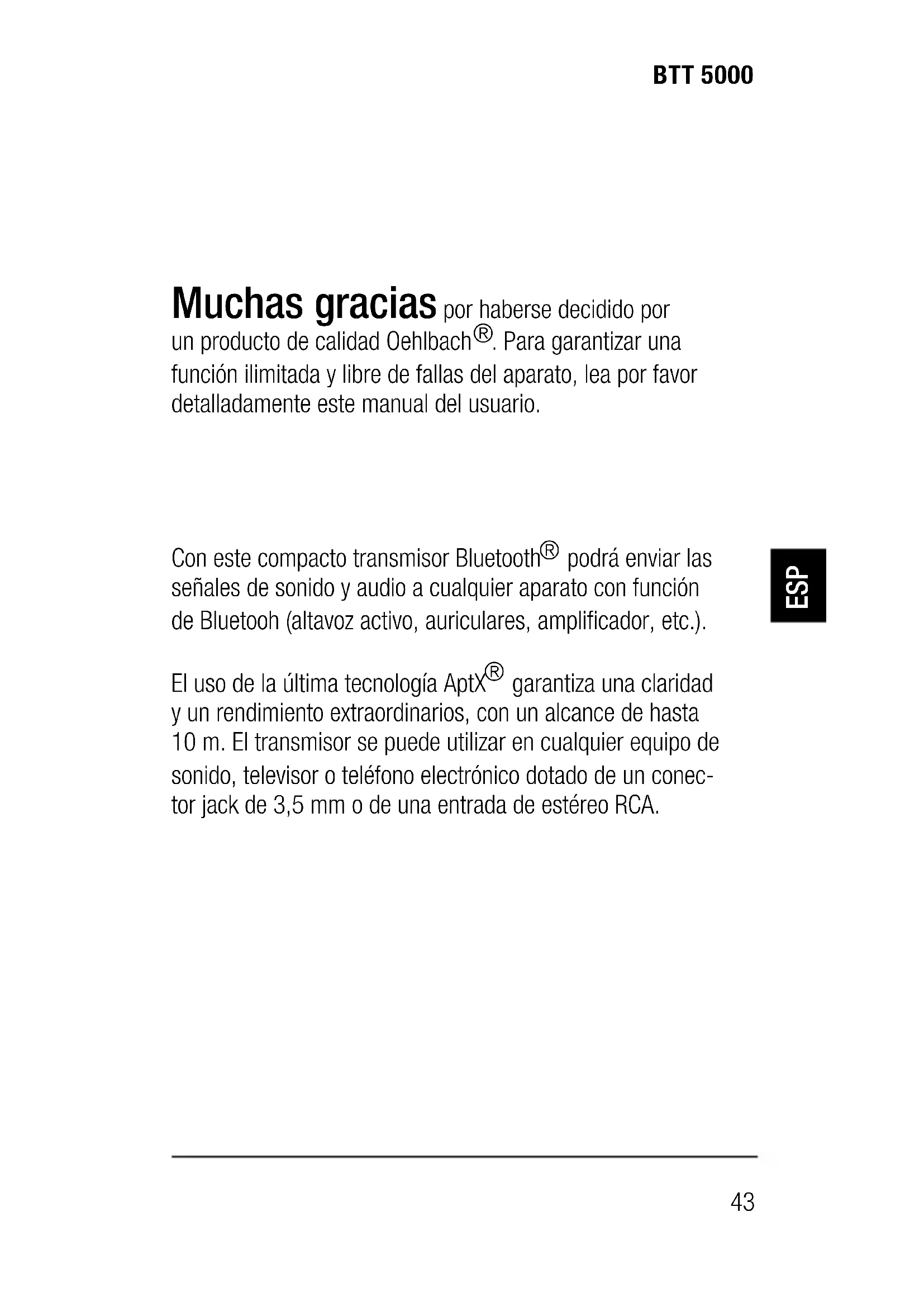 MANUAL DE USUARIO BTT 5000 Oehlbach