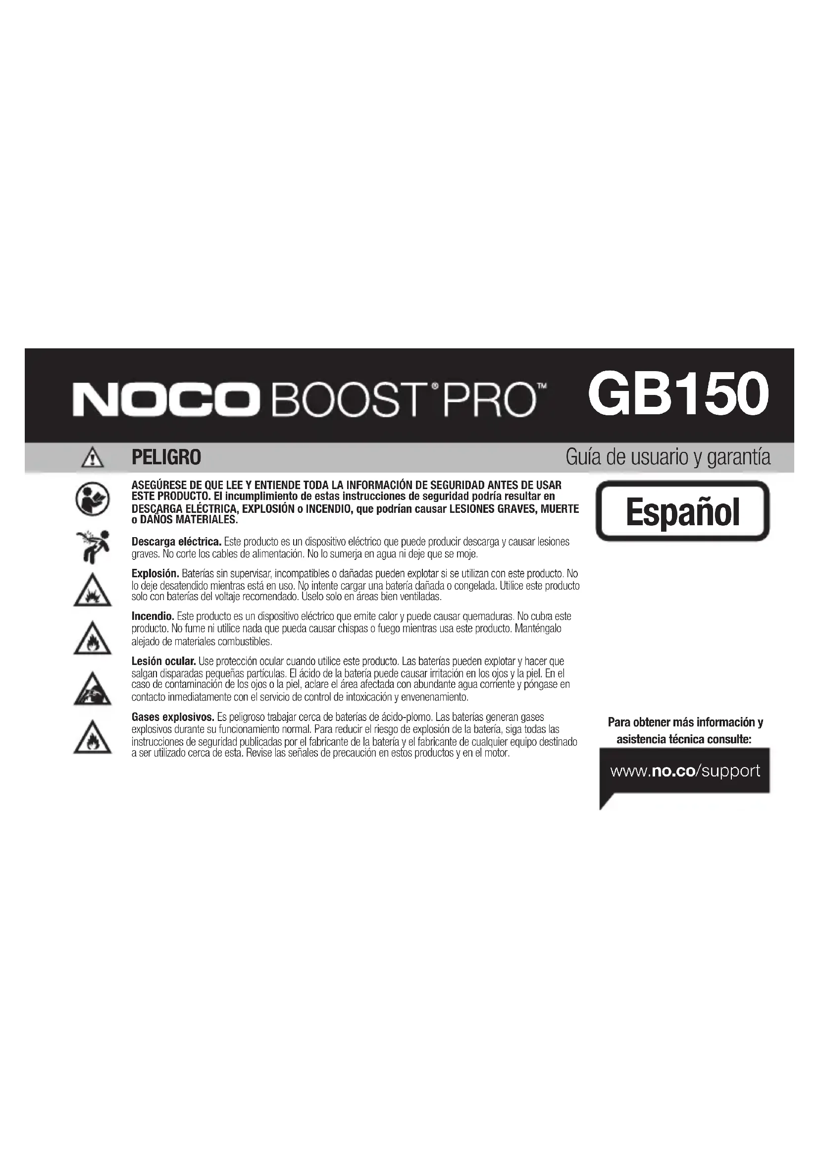 Encuentra gratis el manual del aparato Genius Boost Pro GB150 NOCO en formato PDF.
